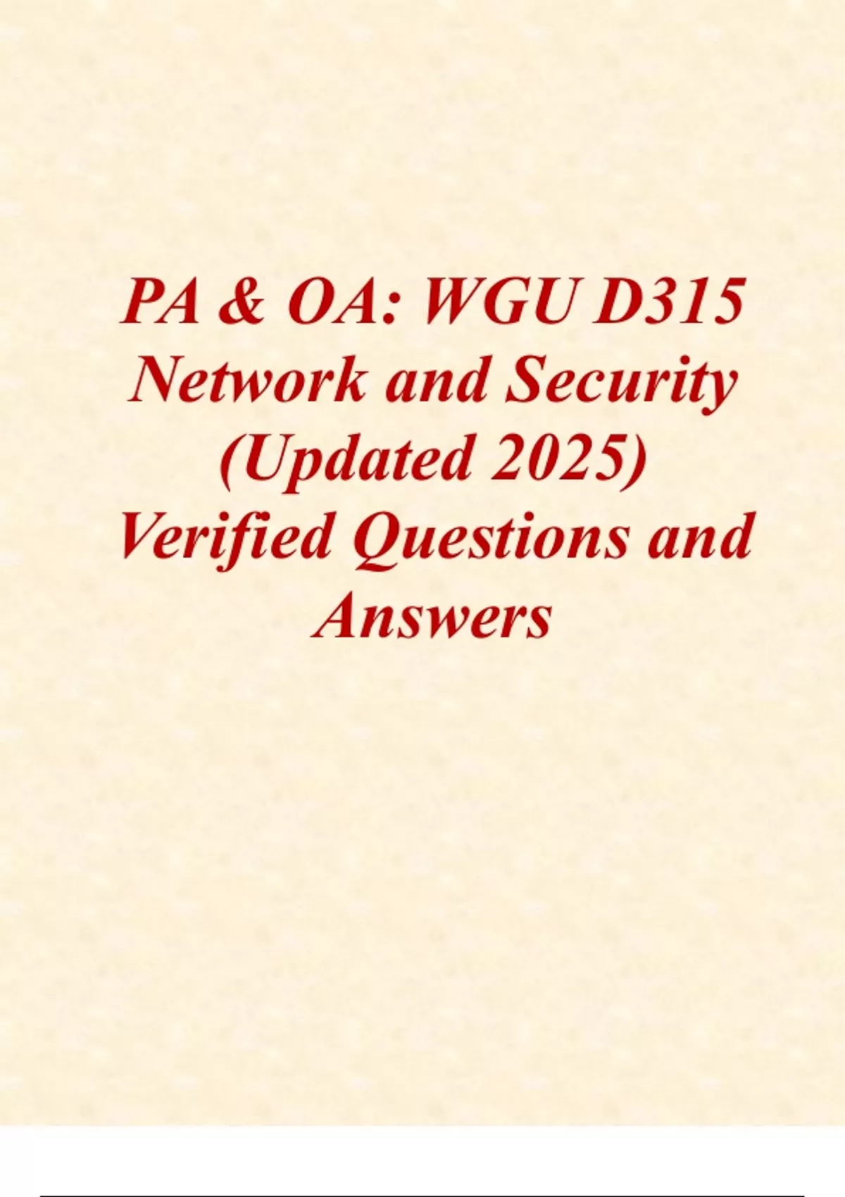 PA & OA: WGU D315 Network and Security (Updated 2025) Verified Questions and Answers