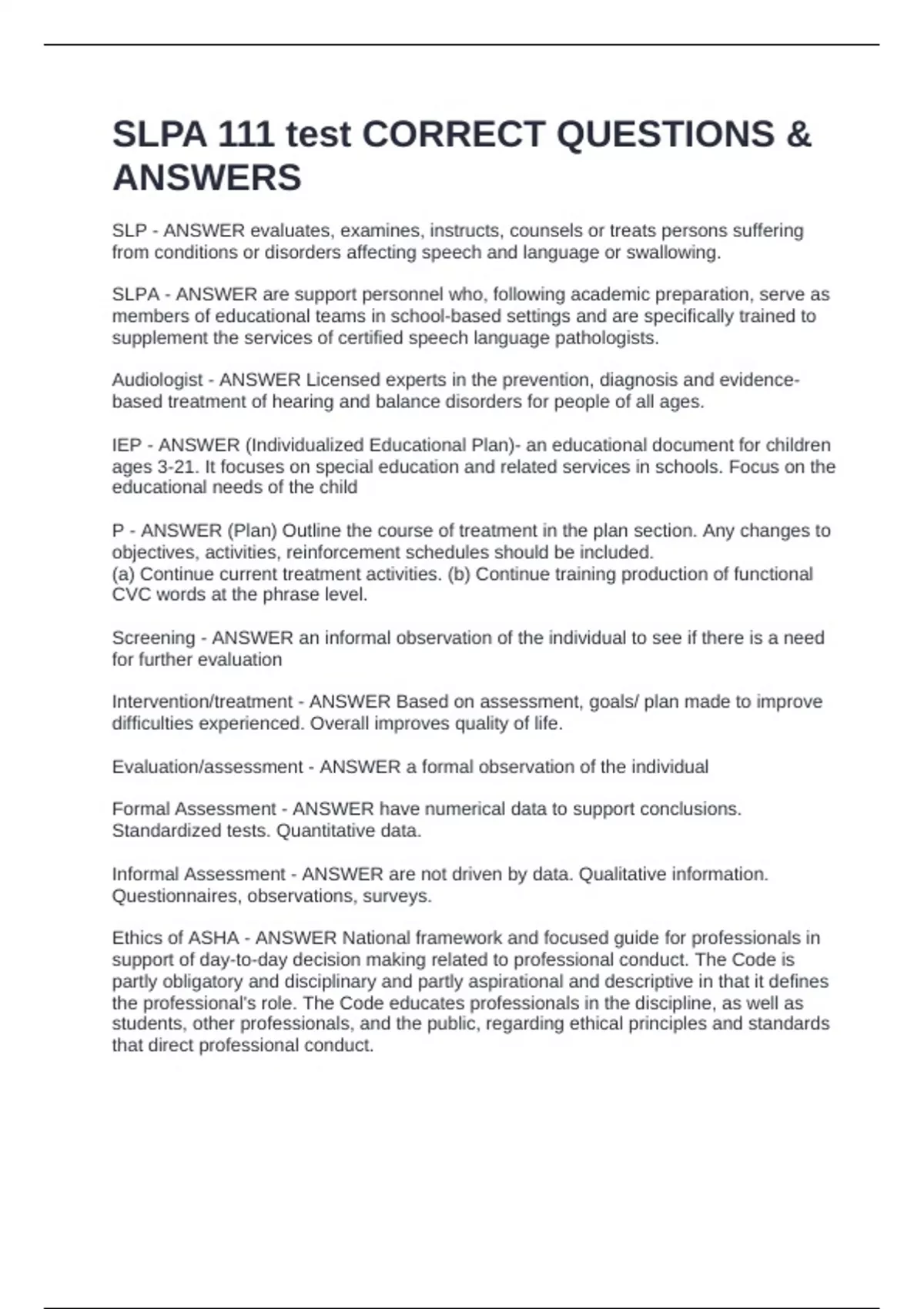 SLPA - ANSWER are support personnel who, following academic preparation, serve as