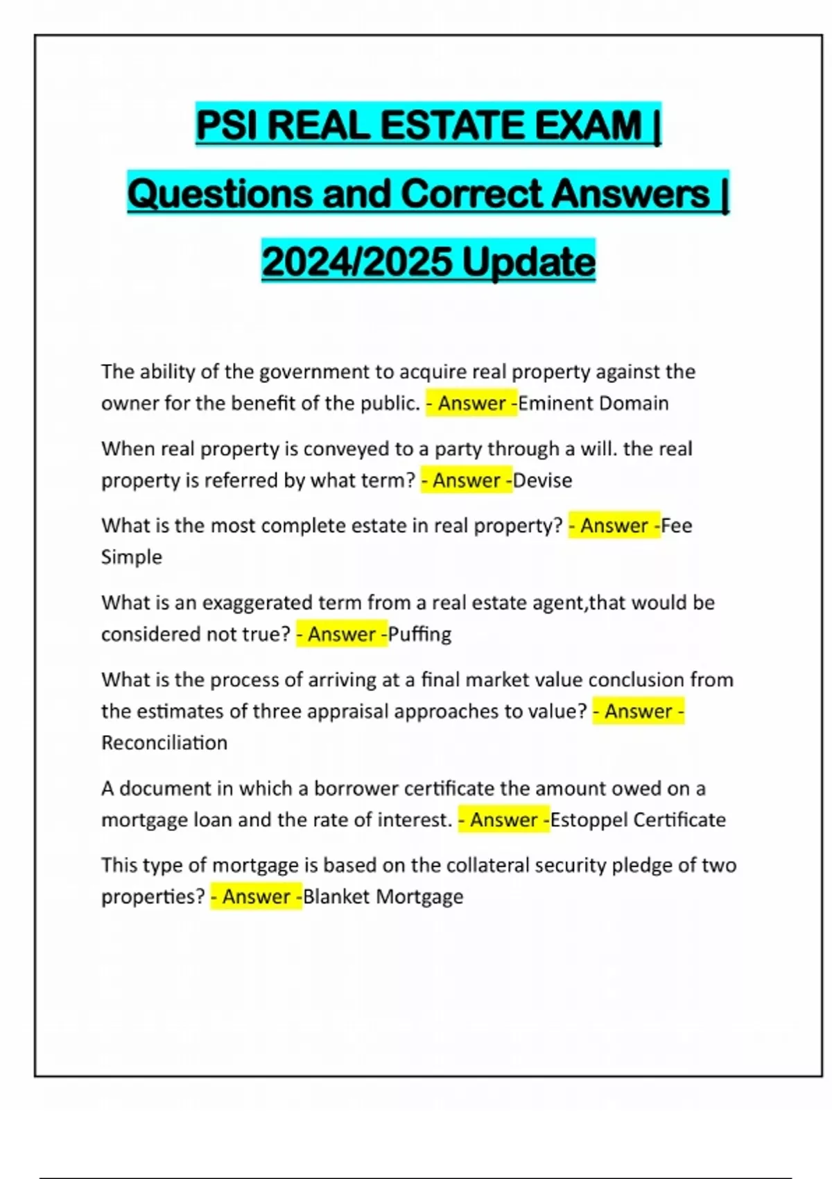 PSI REAL ESTATE EXAM | Questions and Correct Answers | 2024/2025 Update