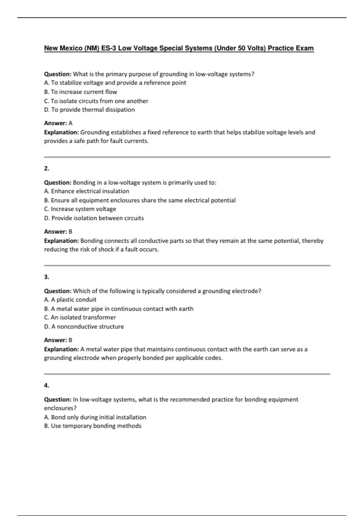 New Mexico (NM) ES-3 Low Voltage Special Systems (Under 50 Volts) Practice Exam