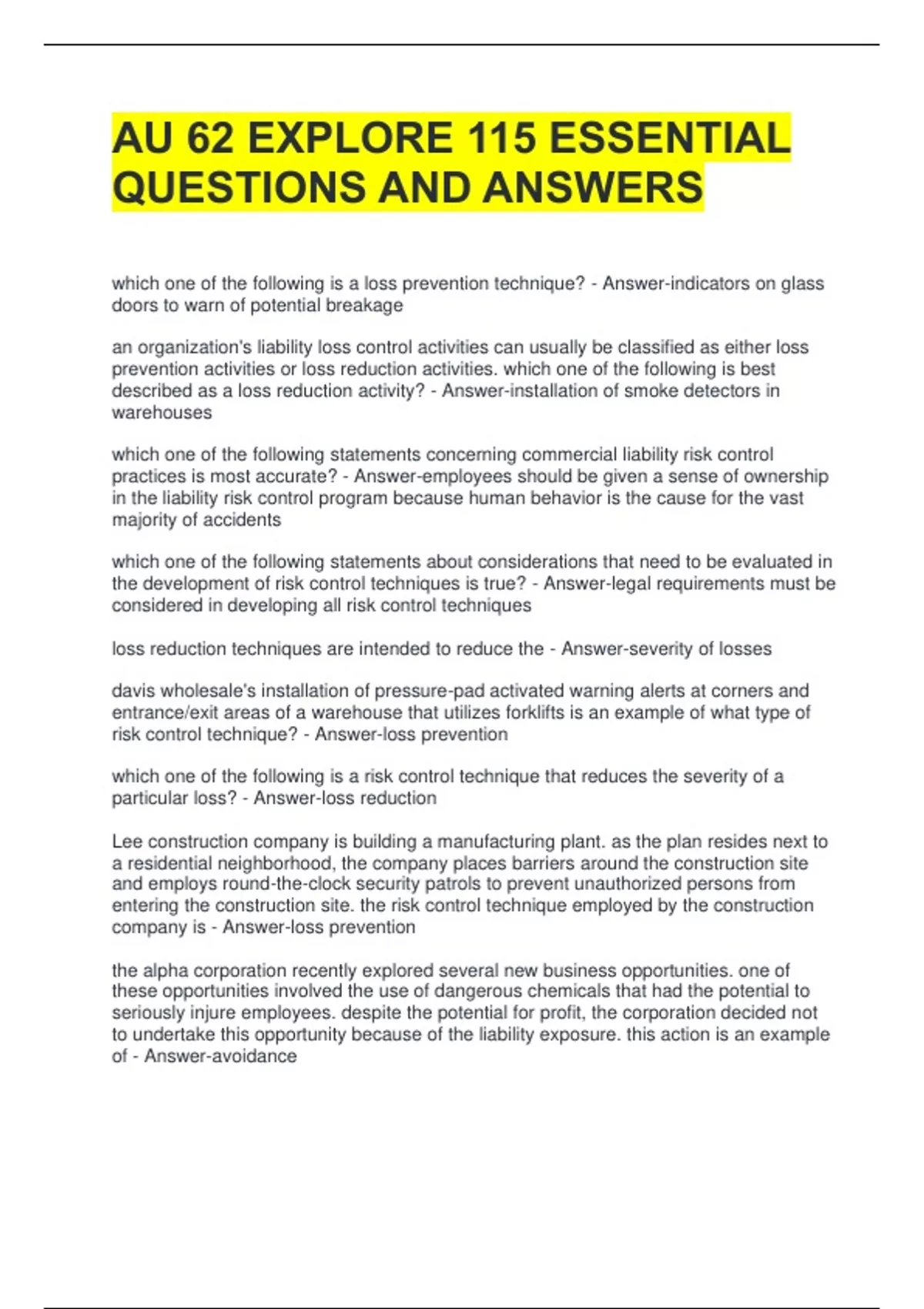 risk control technique? - Answer-loss prevention