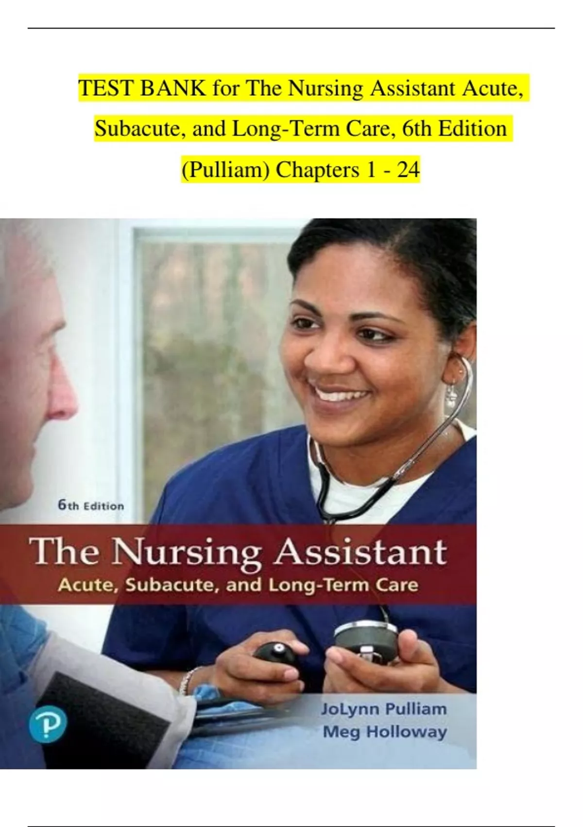 , Test Bank - The Nursing Assistant: Acute, Subacute, and Long-Term Care, 6e (Pulliam, 2020)