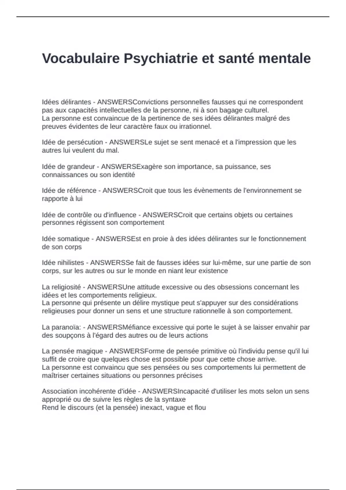 Idées délirantes - ANSWERSConvictions personnelles fausses qui ne correspondent