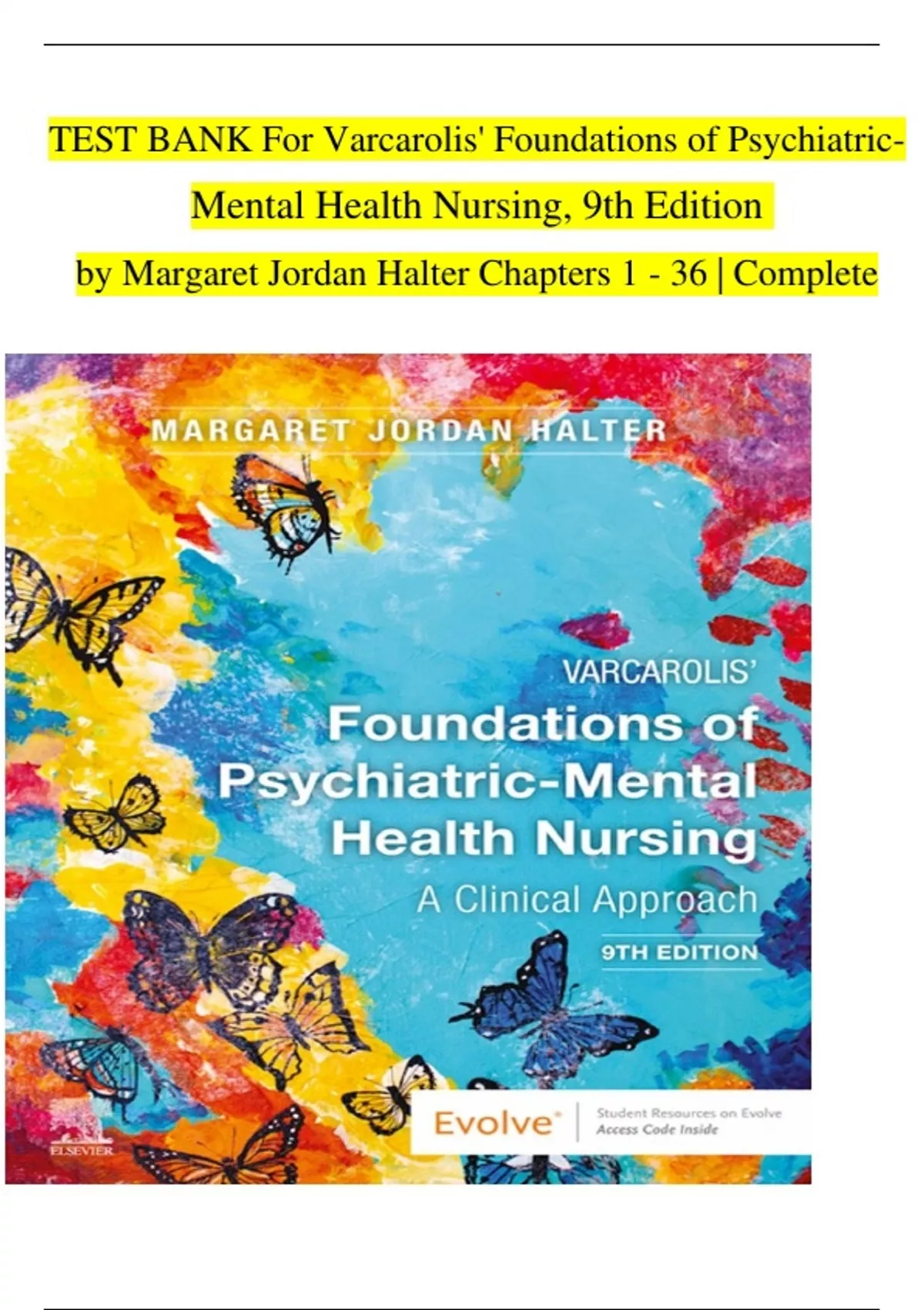 TEST BANK For Varcarolis' Foundations of Psychiatric Mental Health Nursing, 9th Edition by Margaret Jordan Halter Chapters 1 - 36 | Complete