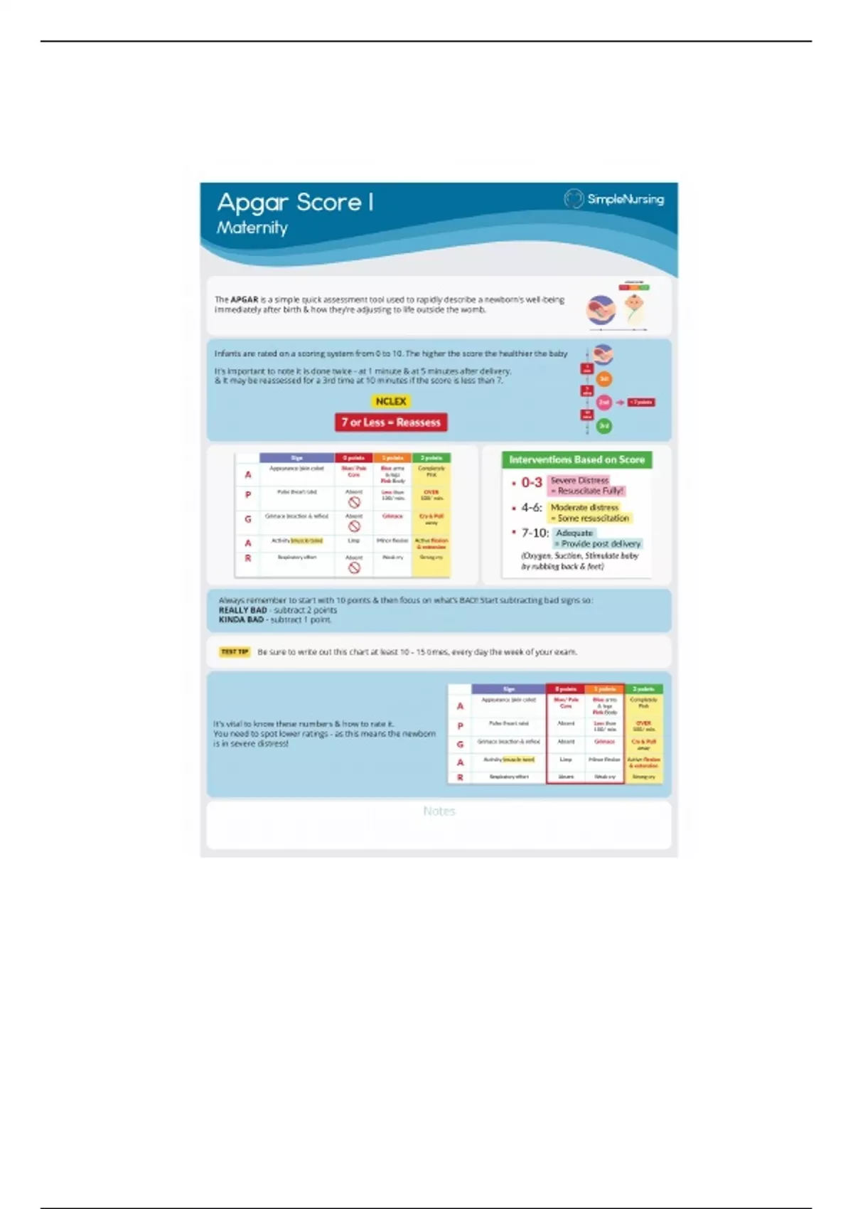 NUR 166 Apgar Score I - Study Material, Simple Nursing Template