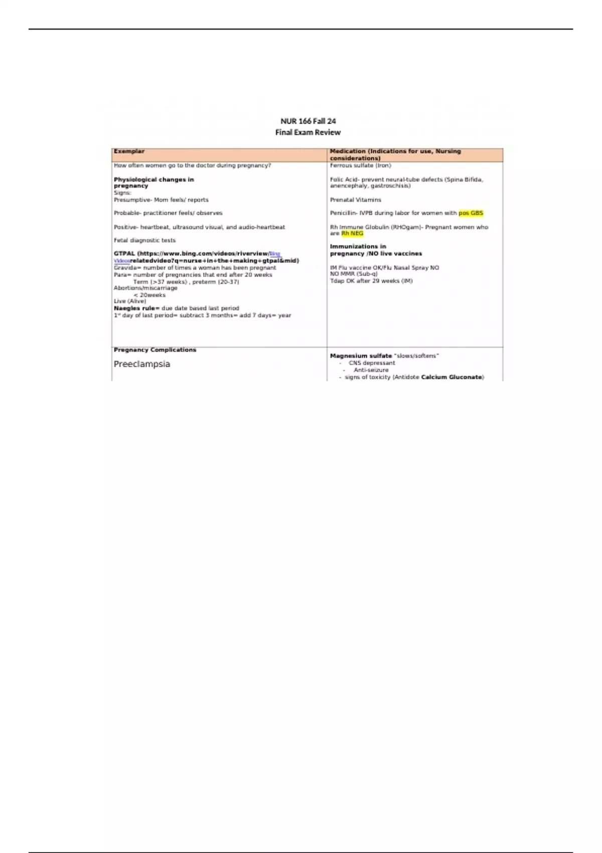 Summary NUR 166 Final Exam Study Guide