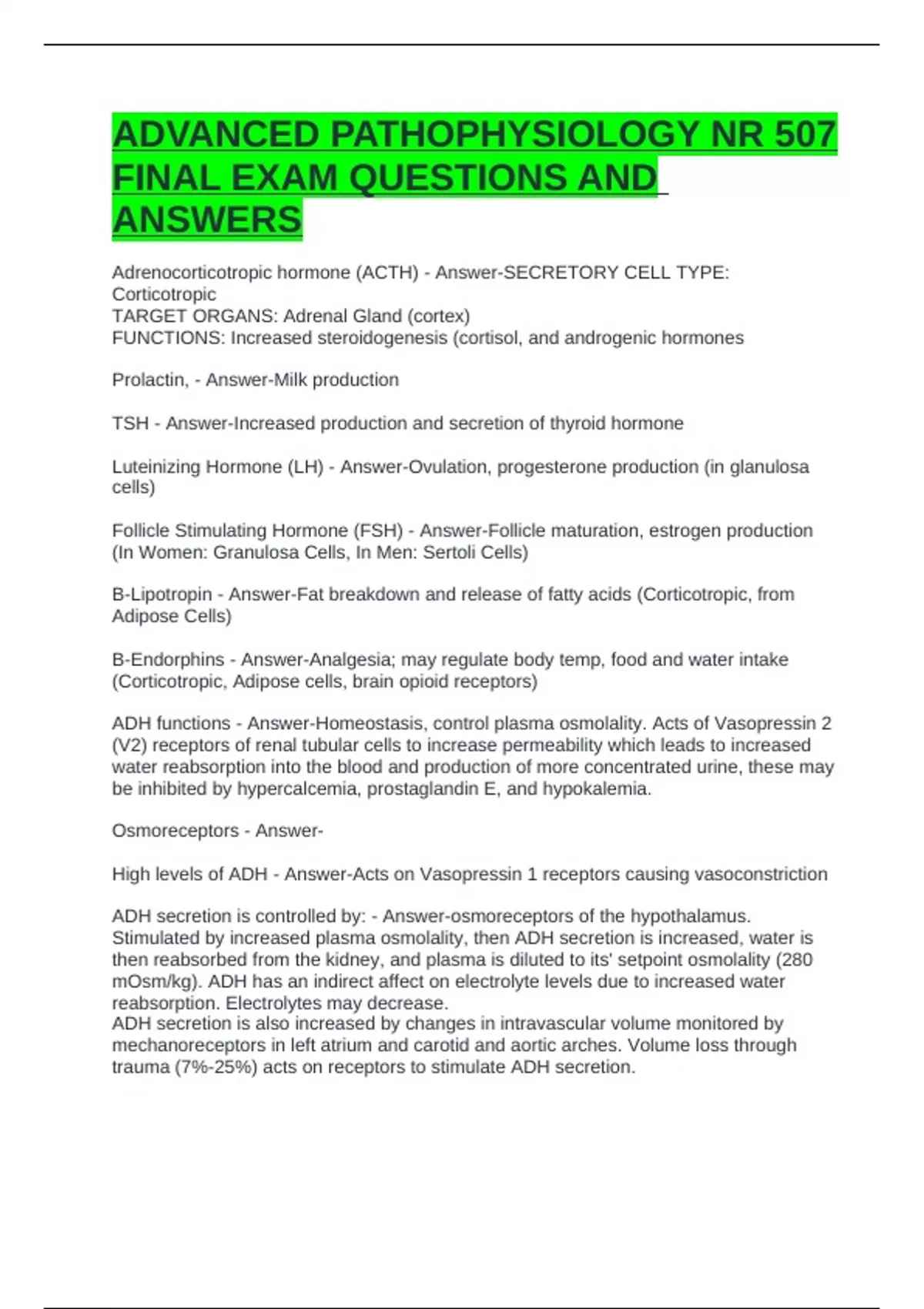 ADVANCED PATHOPHYSIOLOGY NR 507