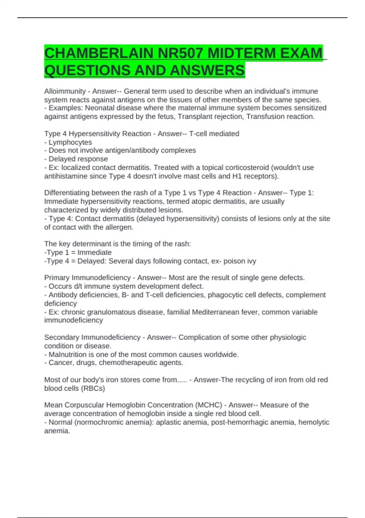 CHAMBERLAIN NR507 MIDTERM EXAM