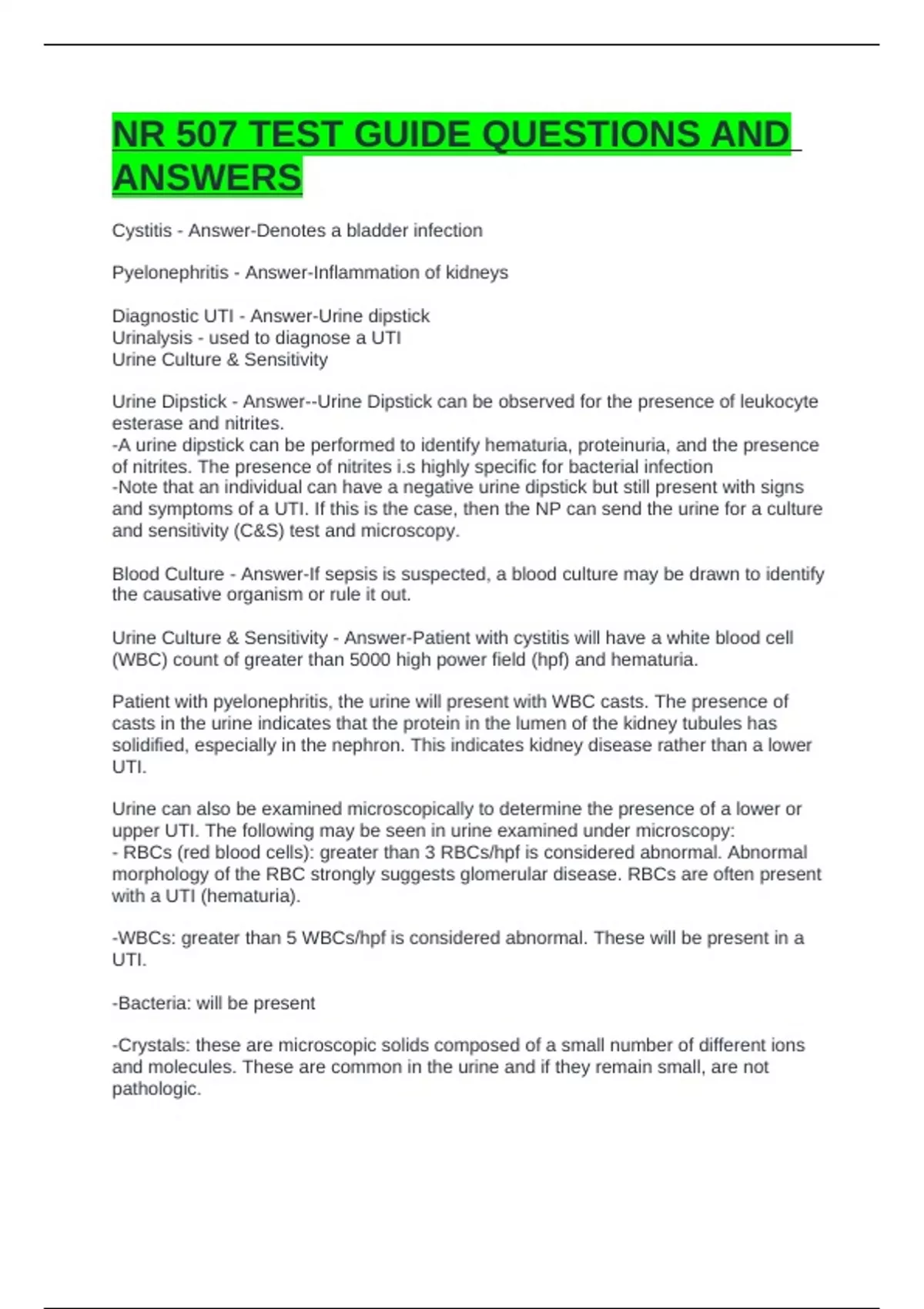 NR 507 TEST GUIDE QUESTIONS AND