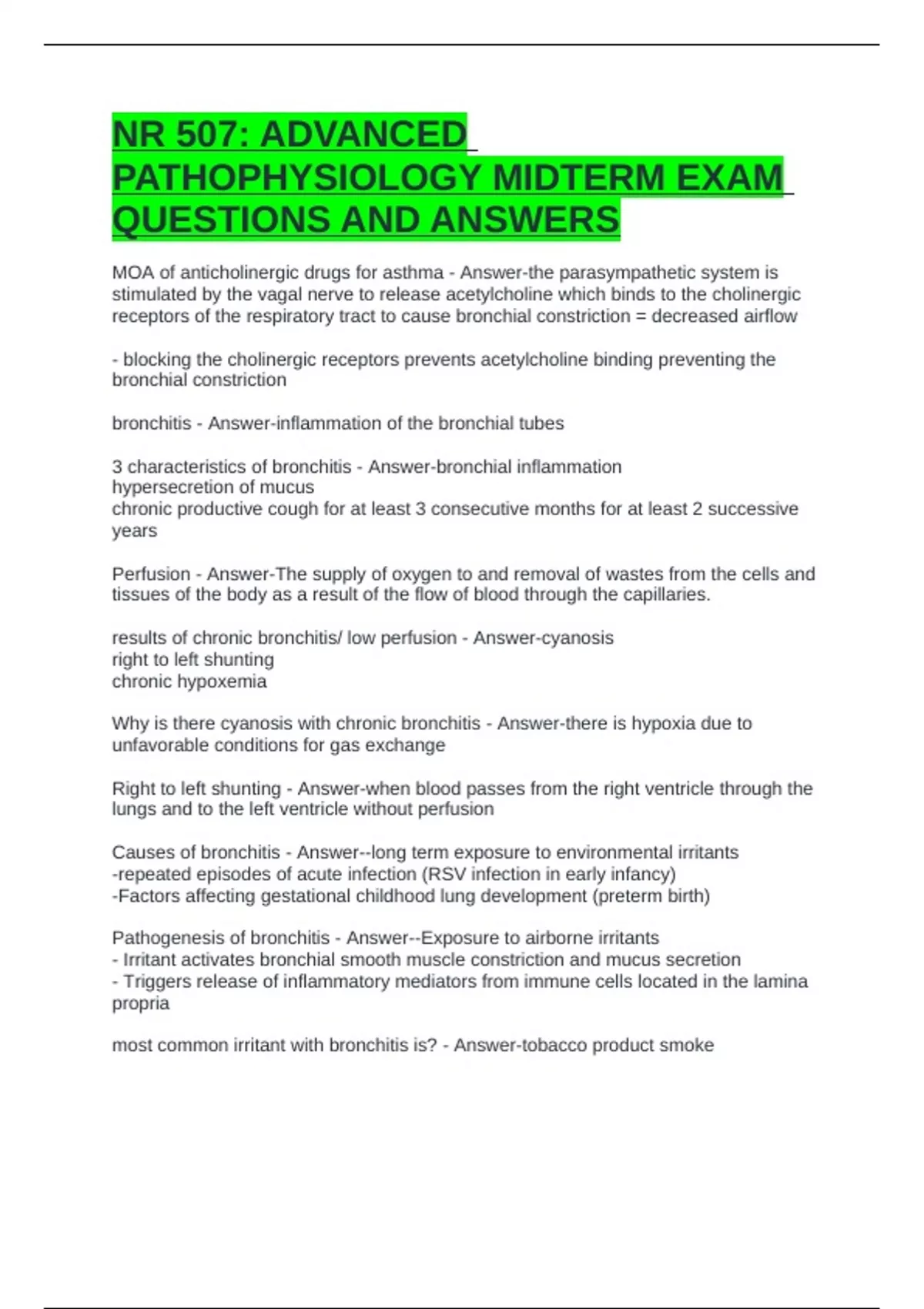 NR 507: ADVANCED PATHOPHYSIOLOGY MIDTERM EXAM QUESTIONS AND ANSWERS