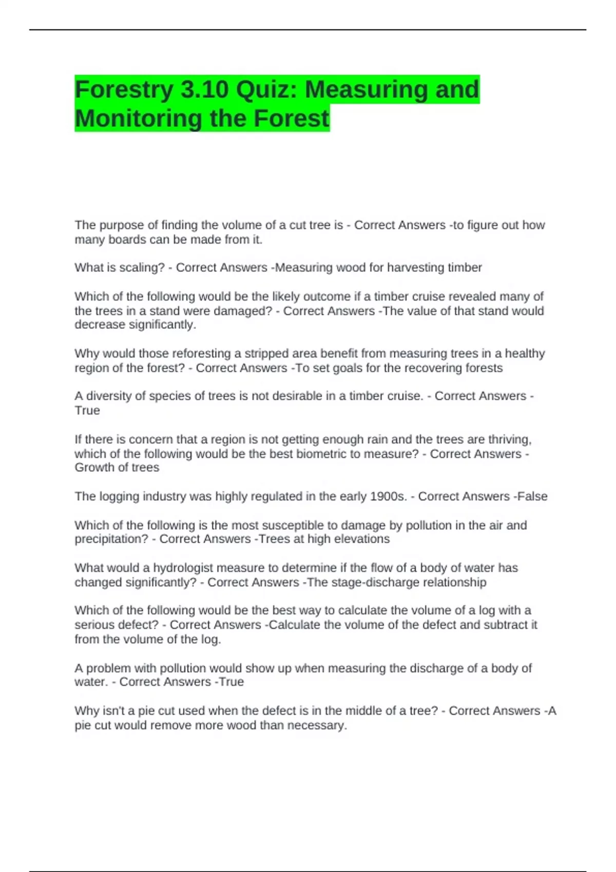 What is scaling? - Correct Answers -Measuring wood for harvesting timber