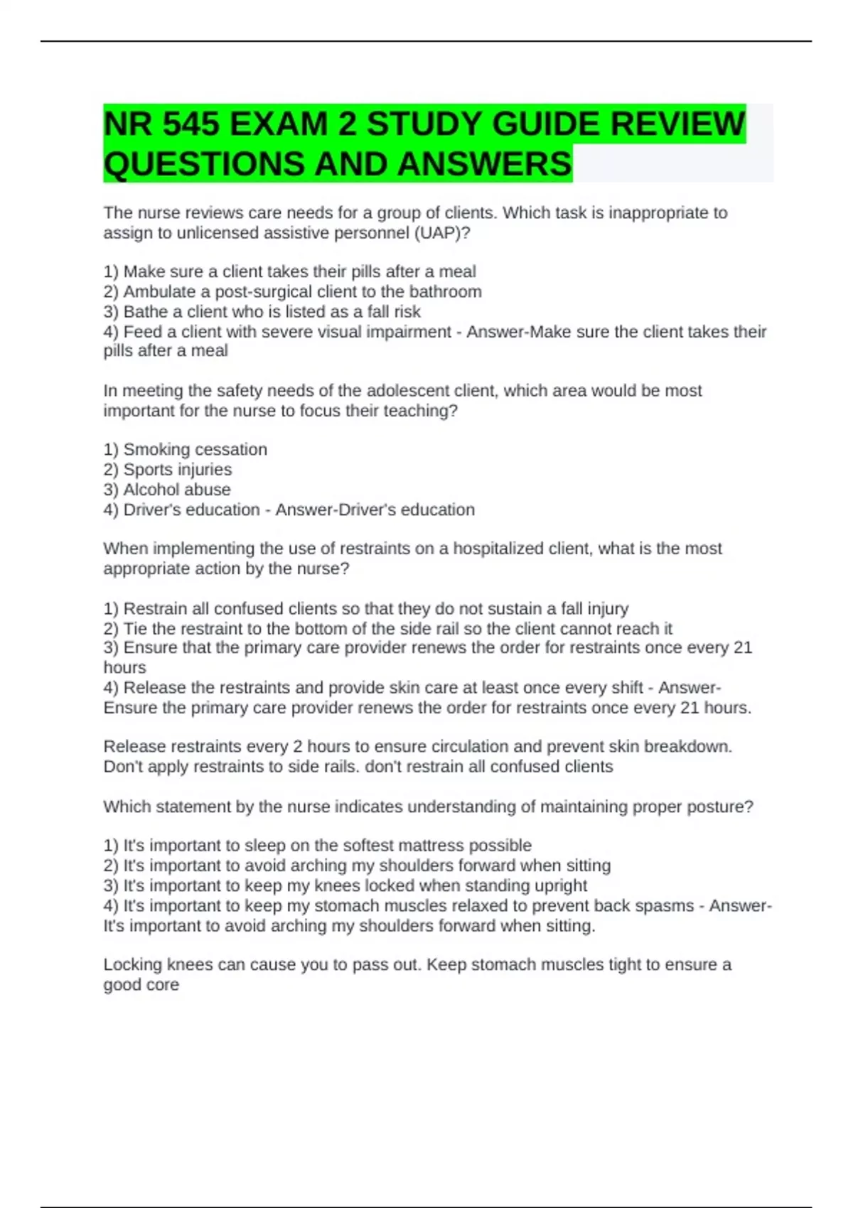 NR 545 EXAM 2 STUDY GUIDE REVIEW QUESTIONS AND ANSWERS