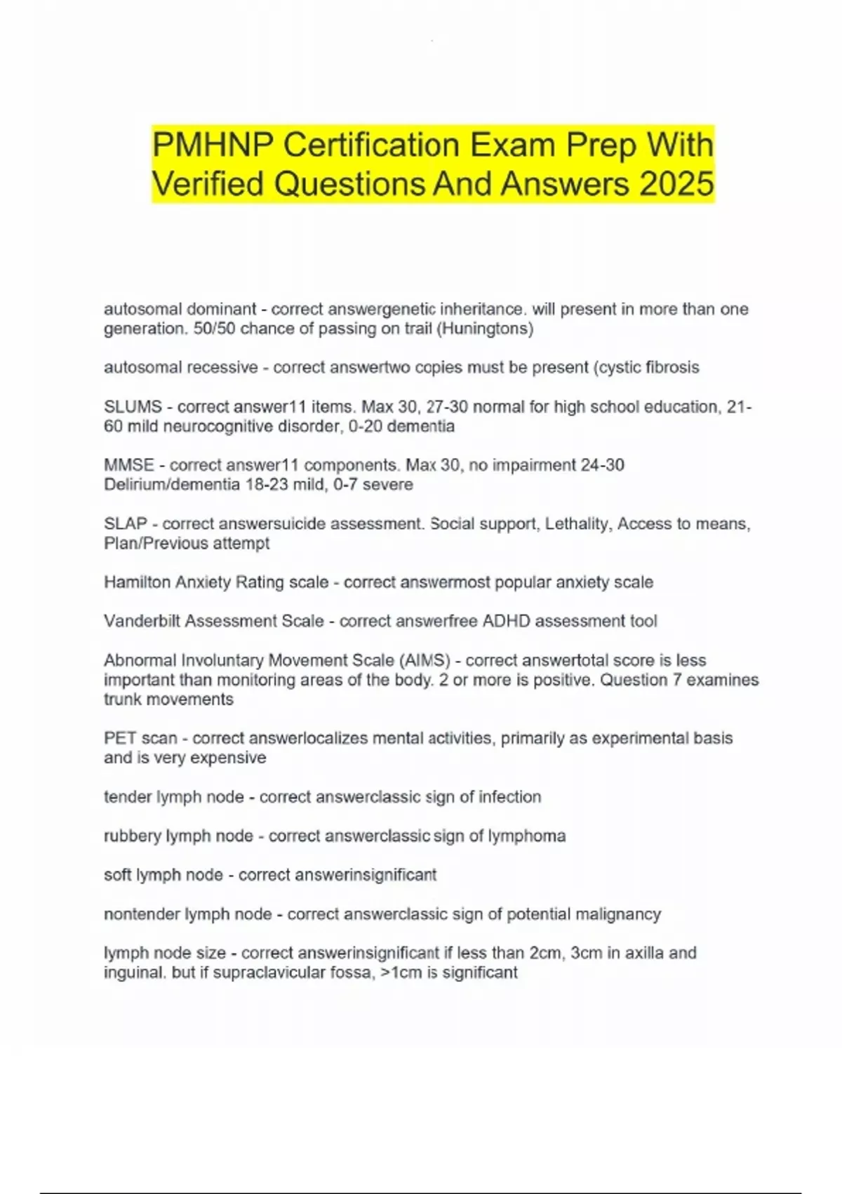 PMHNP Certification Exam Prep With Verified Questions And Answers 2025