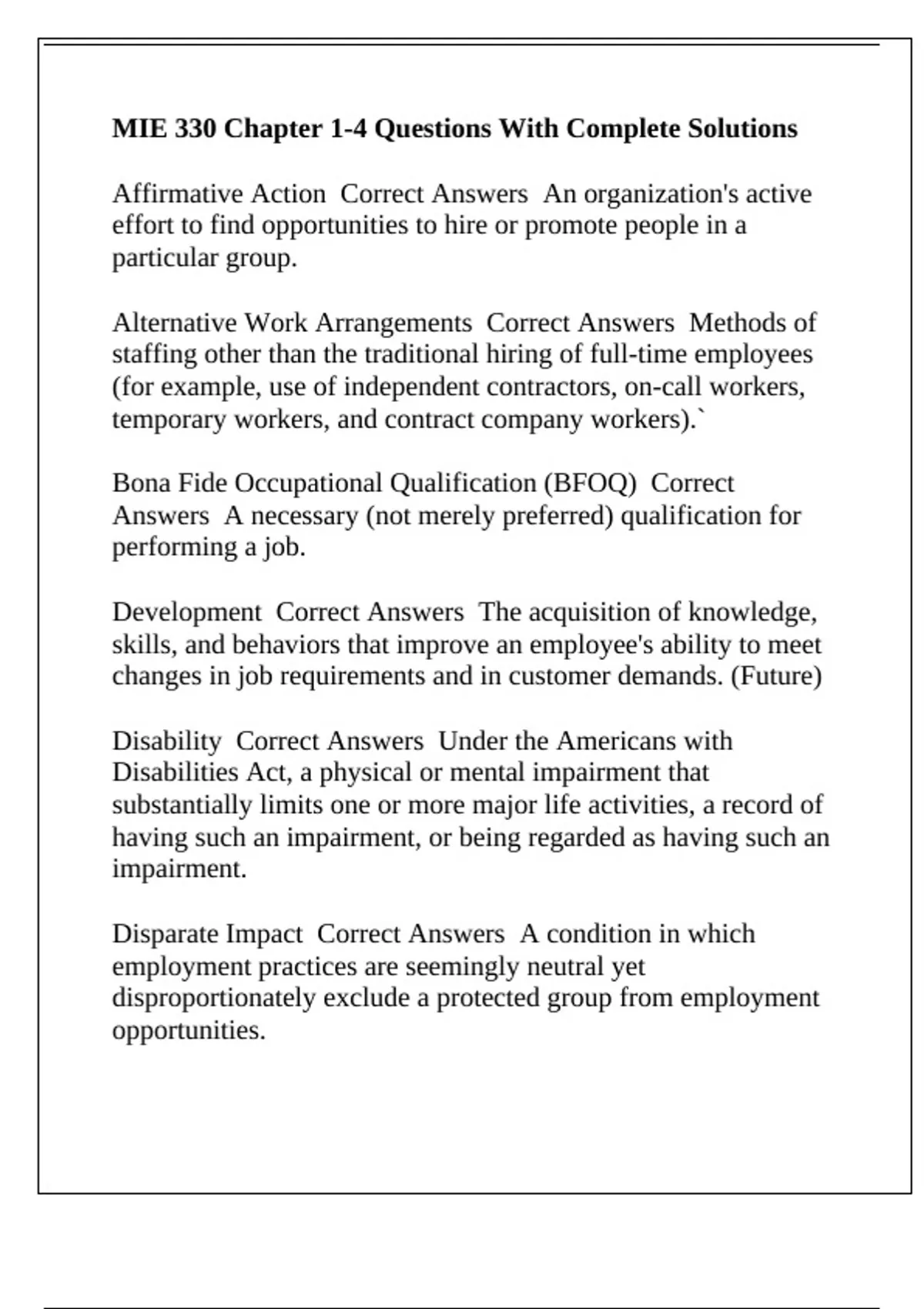 MIE 330 Chapter 1-4 Questions With Complete Solutions