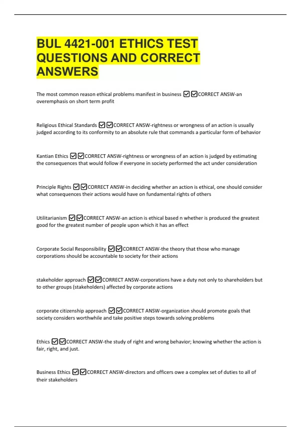 Religious Ethical Standards ✅✅CORRECT ANSW-rightness or wrongness of an action is usually