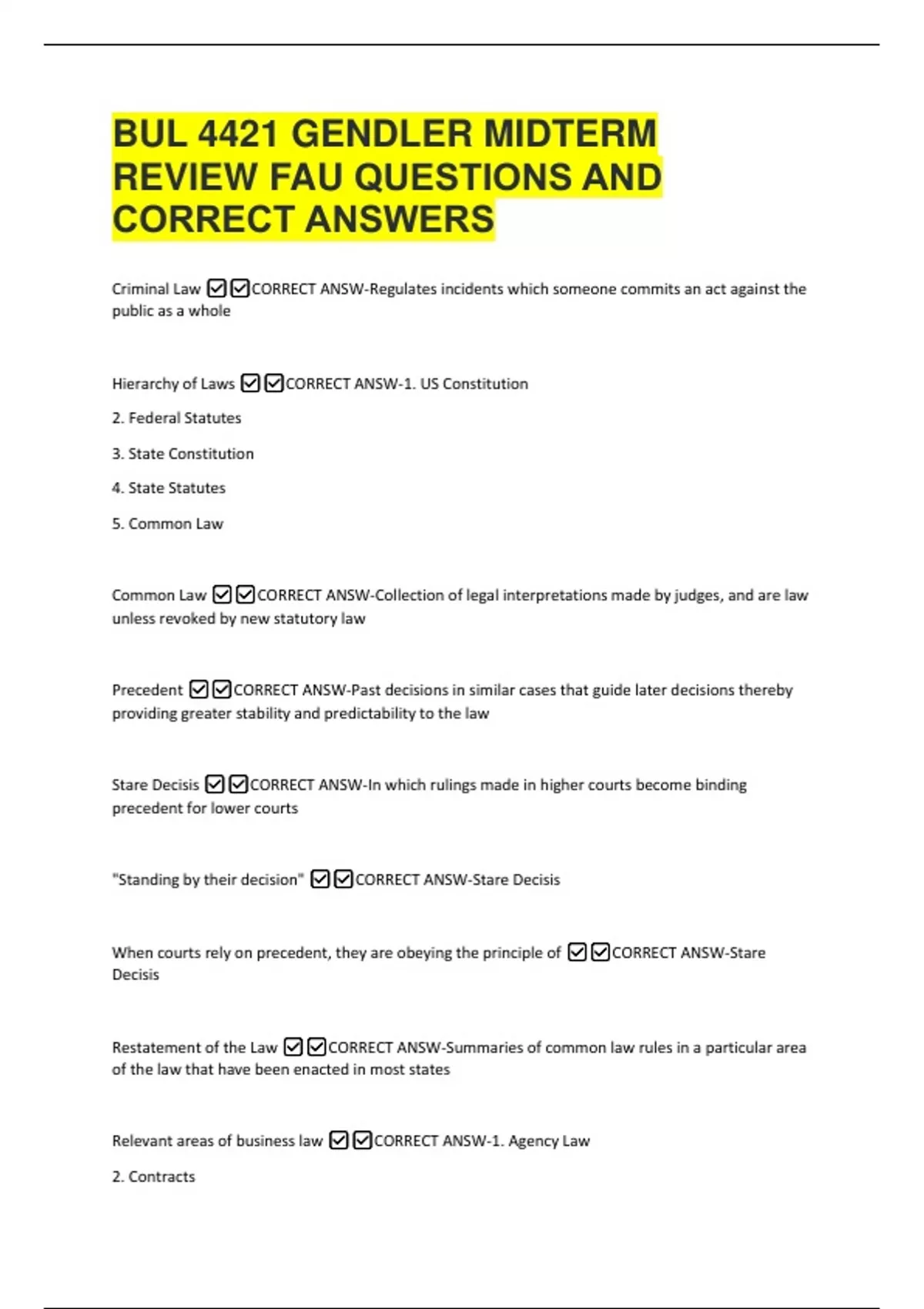 Common Law ✅✅CORRECT ANSW-Collection of legal interpretations made by judges, and are law