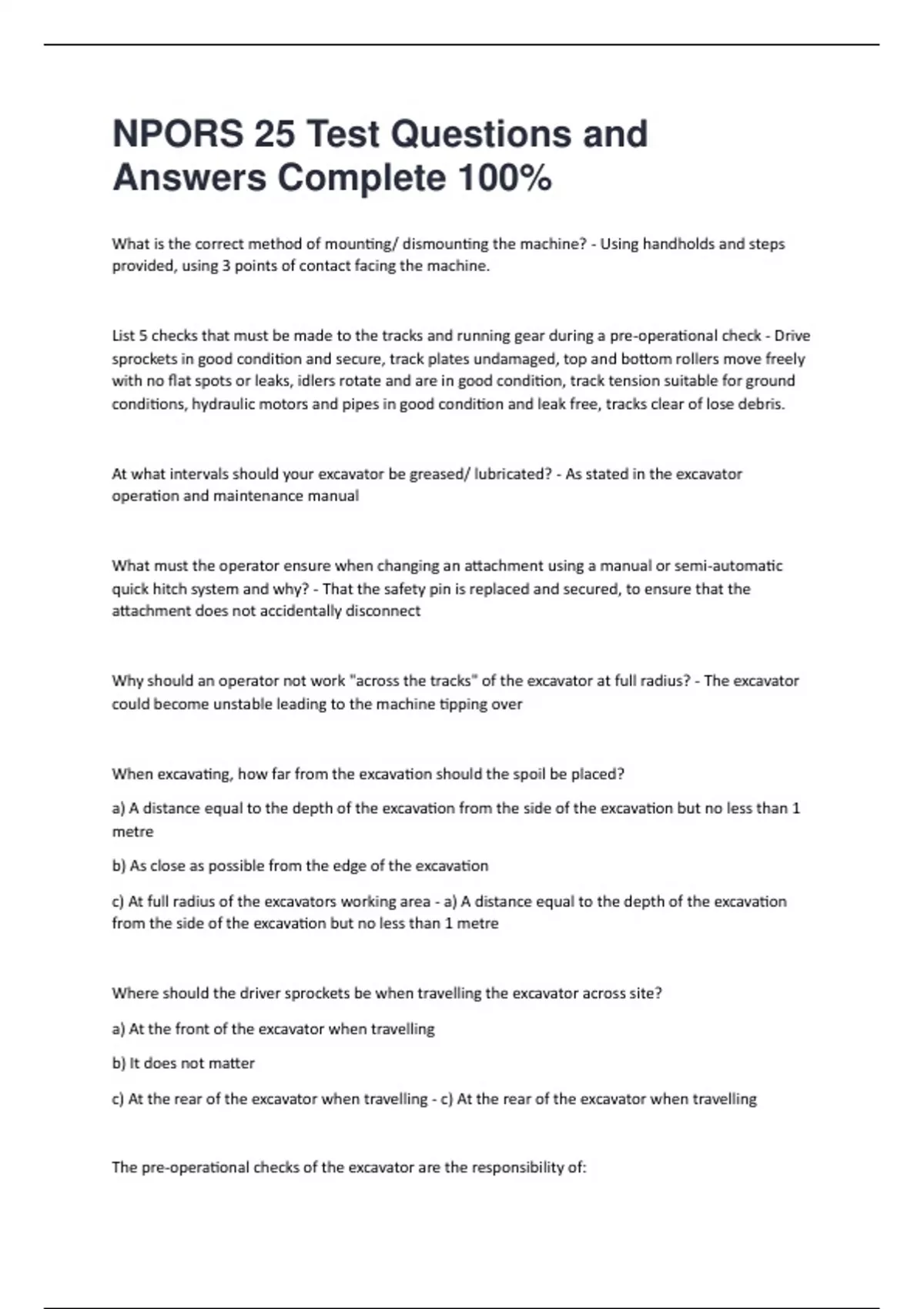 c) The excavators pre-operational check sheet - b) A permit to dig including location of any buried