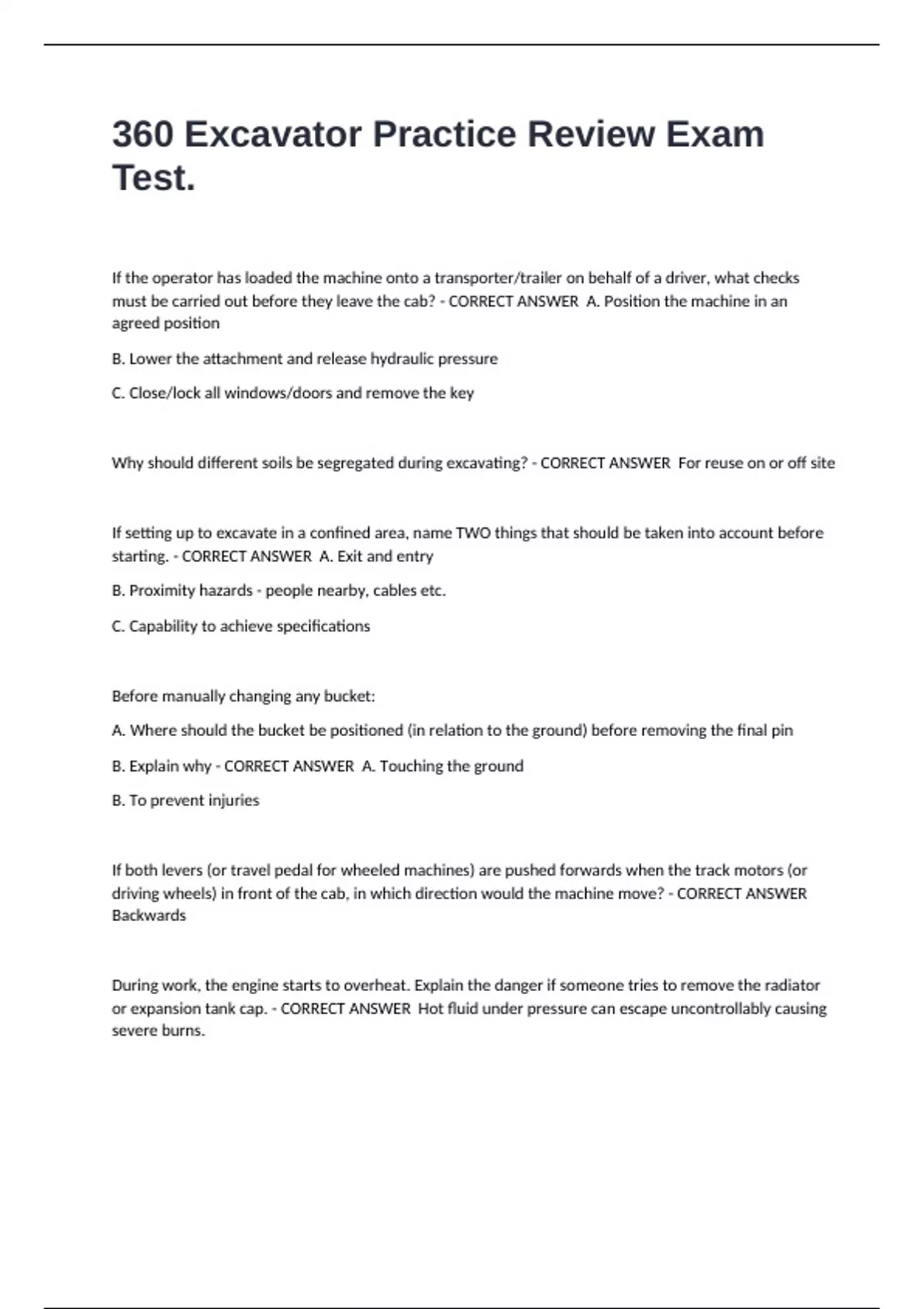 must be carried out before they leave the cab? - CORRECT ANSWER A. Position the machine in an