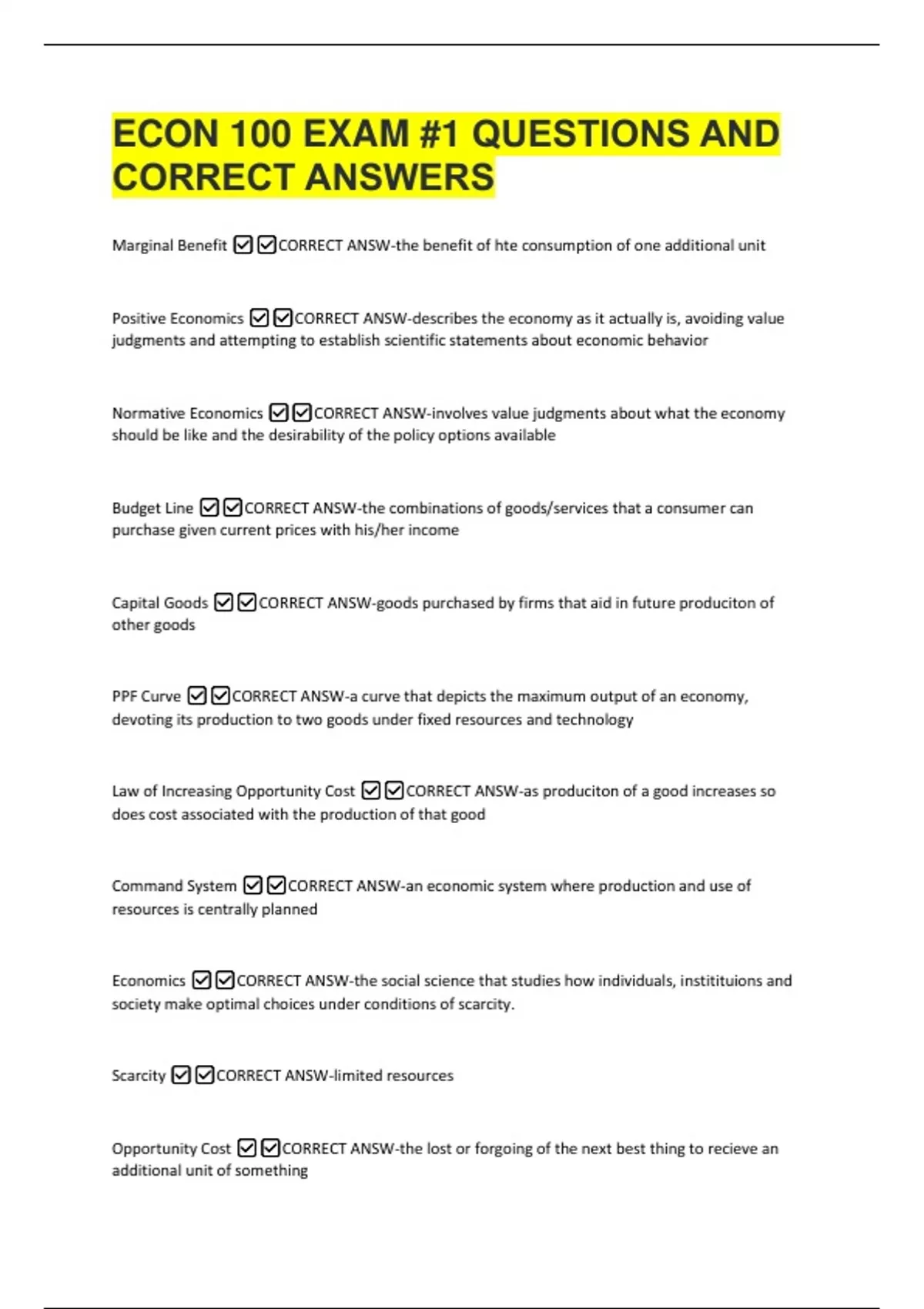 CORRECT ANSWERS