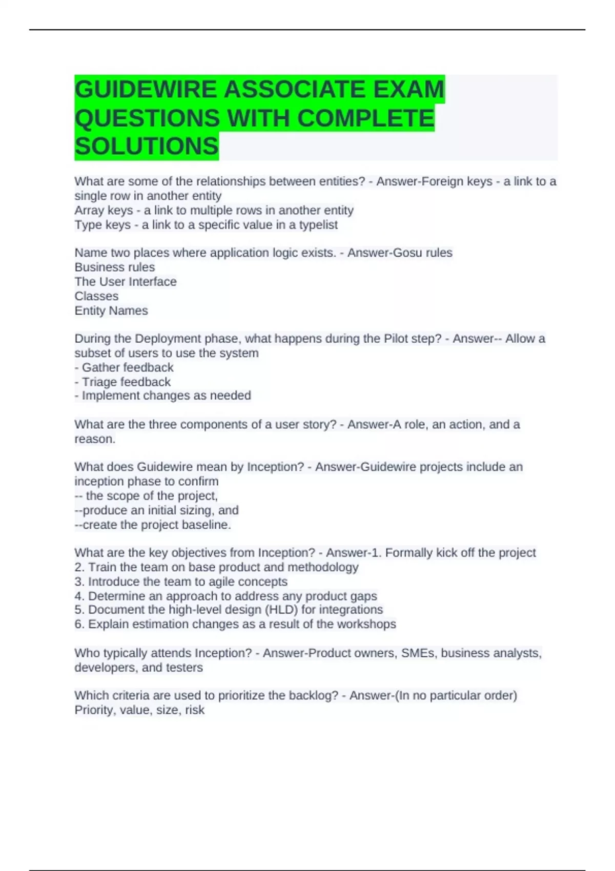 GUIDEWIRE ASSOCIATE EXAM QUESTIONS WITH COMPLETE SOLUTIONS