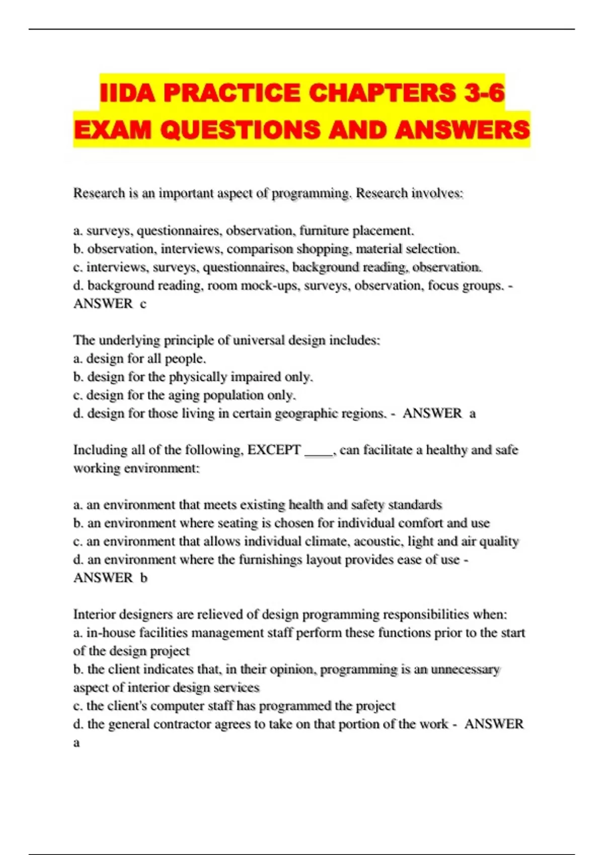 IIDA PRACTICE CHAPTERS 3-6