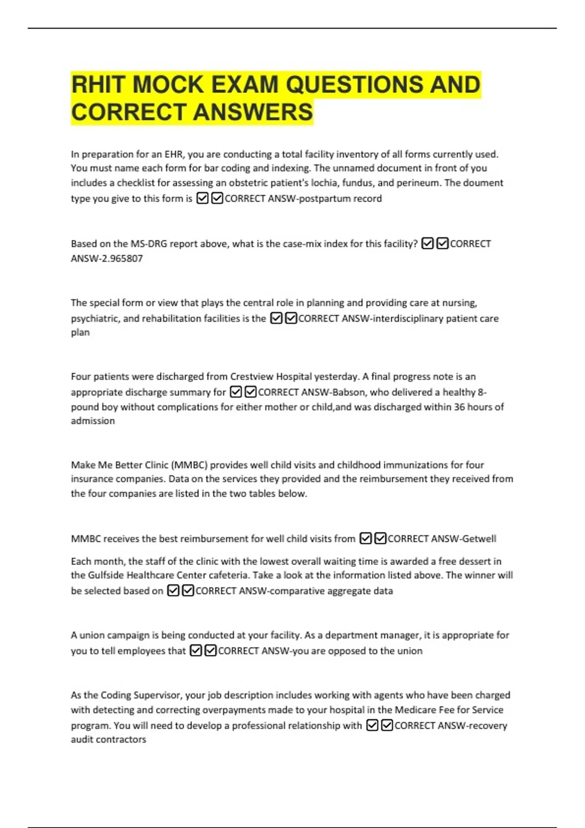RHIT MOCK EXAM QUESTIONS AND CORRECT ANSWERS