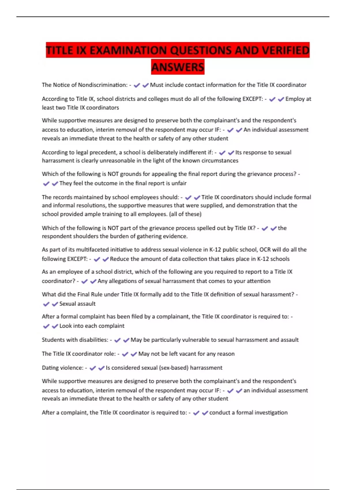 TITLE IX EXAMINATION QUESTIONS AND VERIFIED