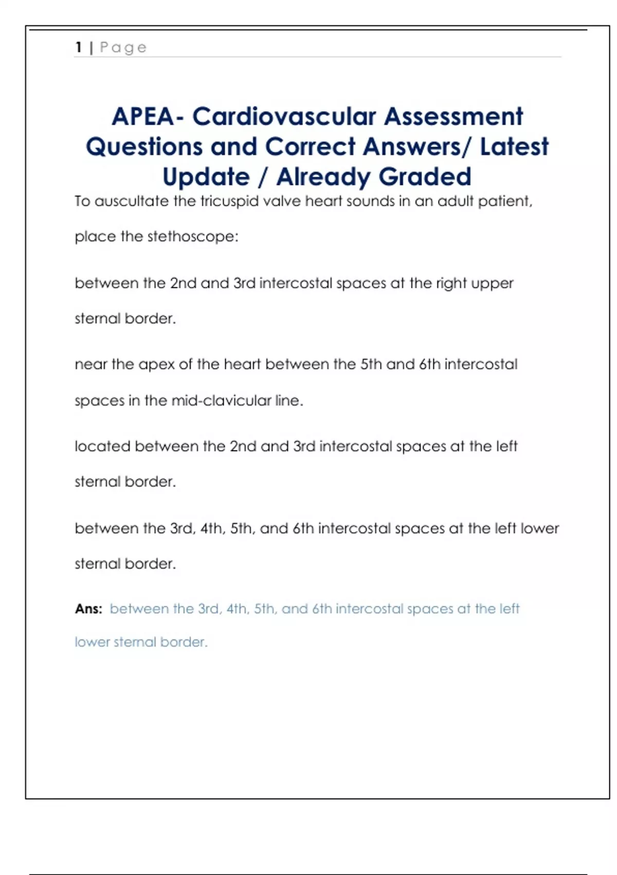 Ans: between the 2nd and 3rd intercostal spaces at the left sternal