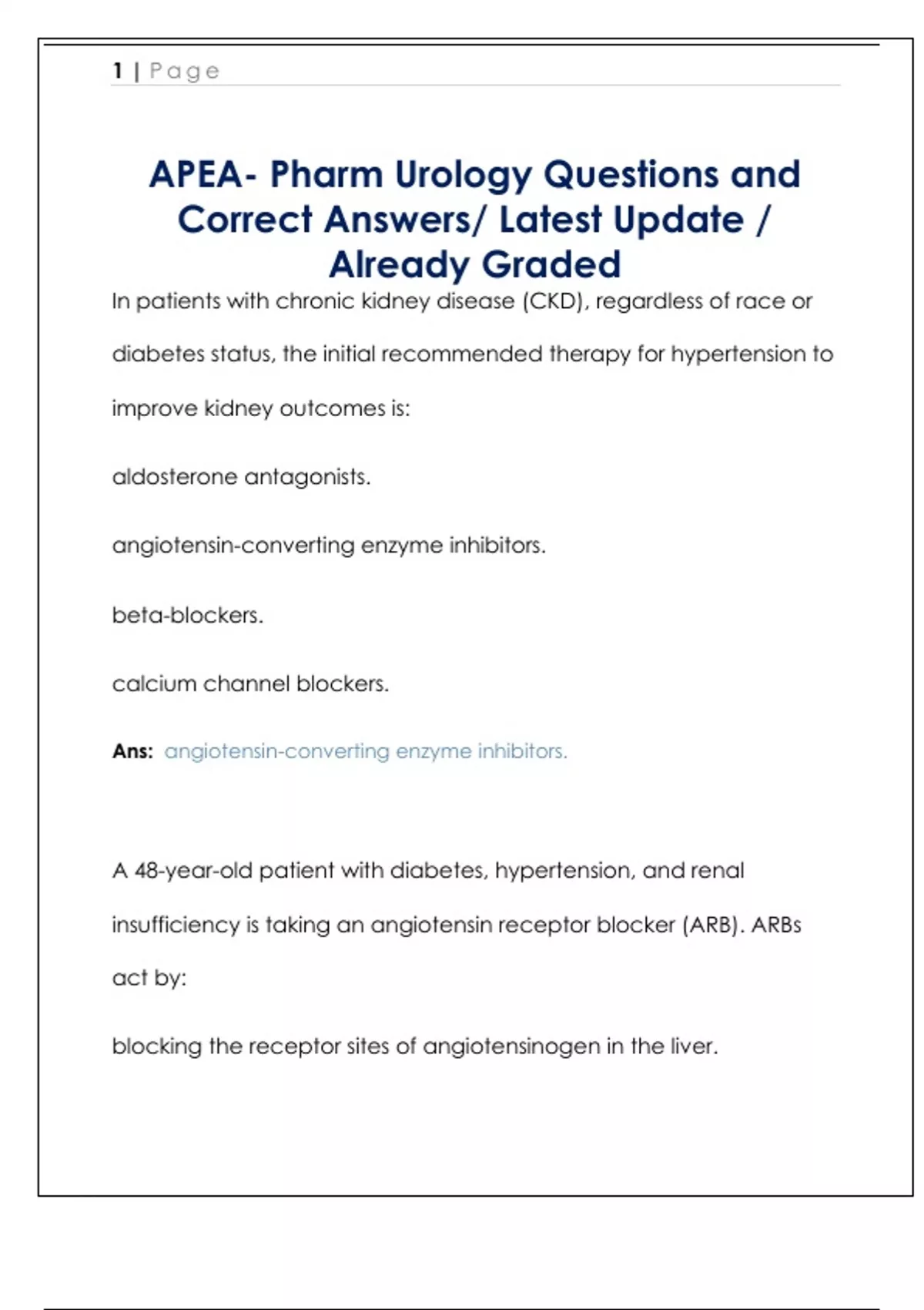 APEA- Pharm Urology Questions and