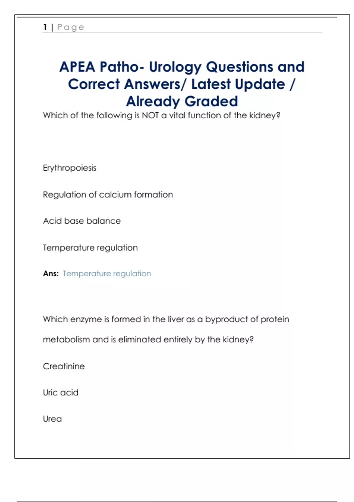APEA Patho- Urology Questions and
