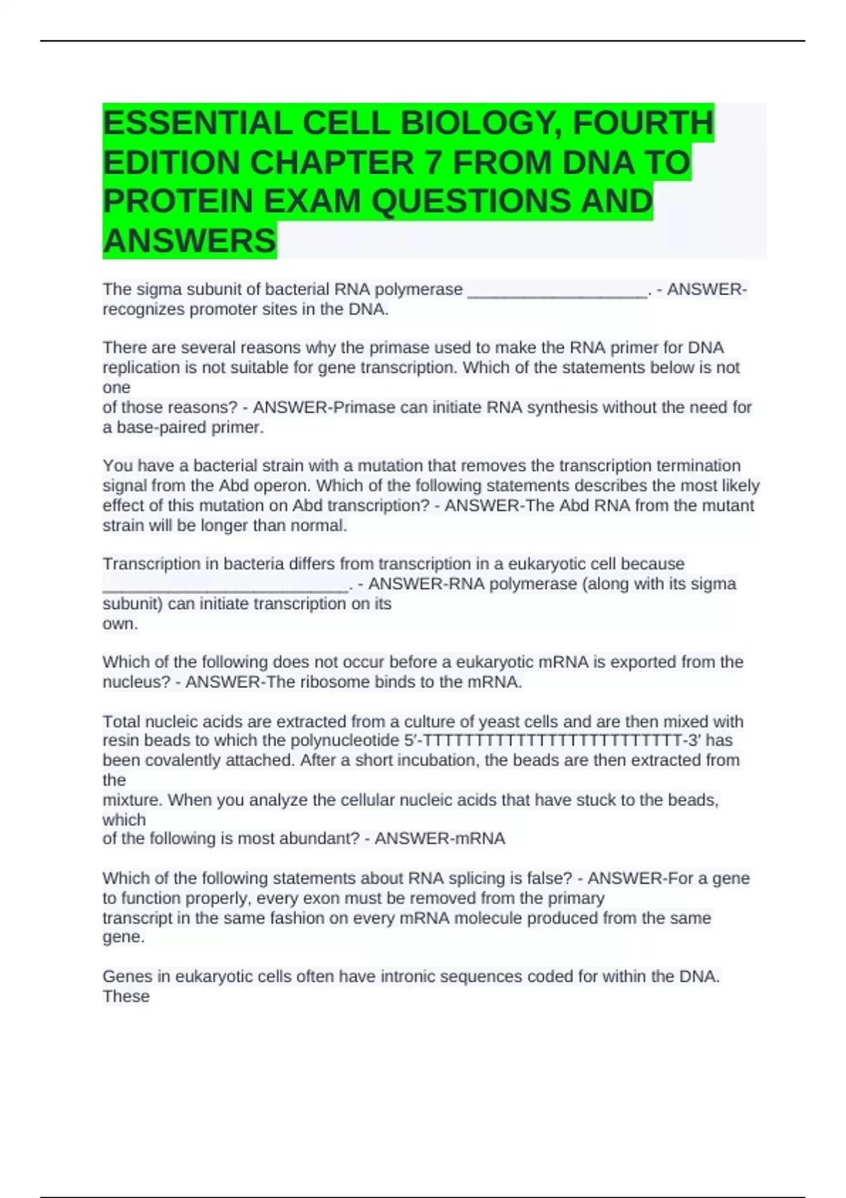 Which of the following statements about RNA splicing is false? - ANSWER-For a gene