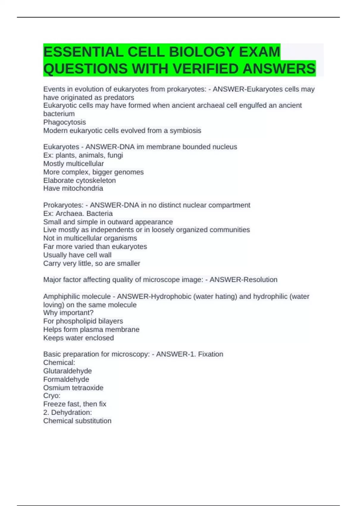 ESSENTIAL CELL BIOLOGY EXAM QUESTIONS WITH VERIFIED ANSWERS