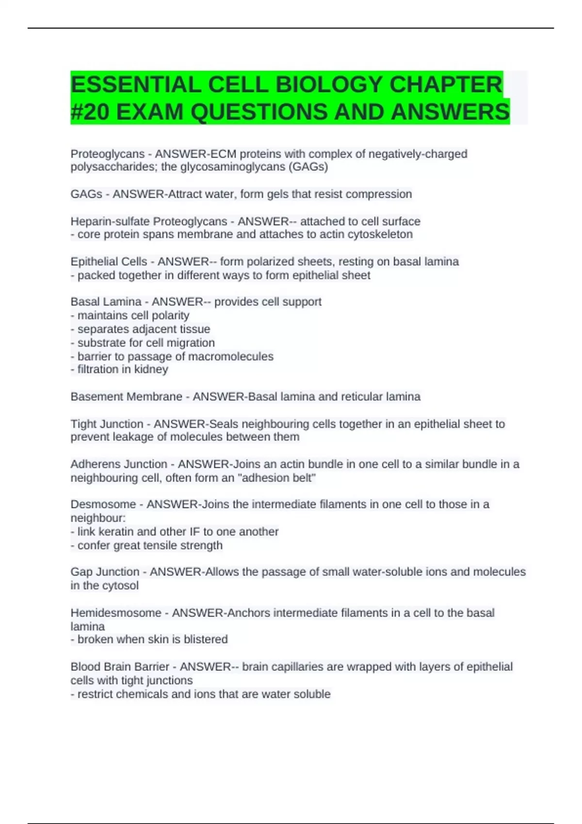 ESSENTIAL CELL BIOLOGY CHAPTER #20 EXAM QUESTIONS AND ANSWERS