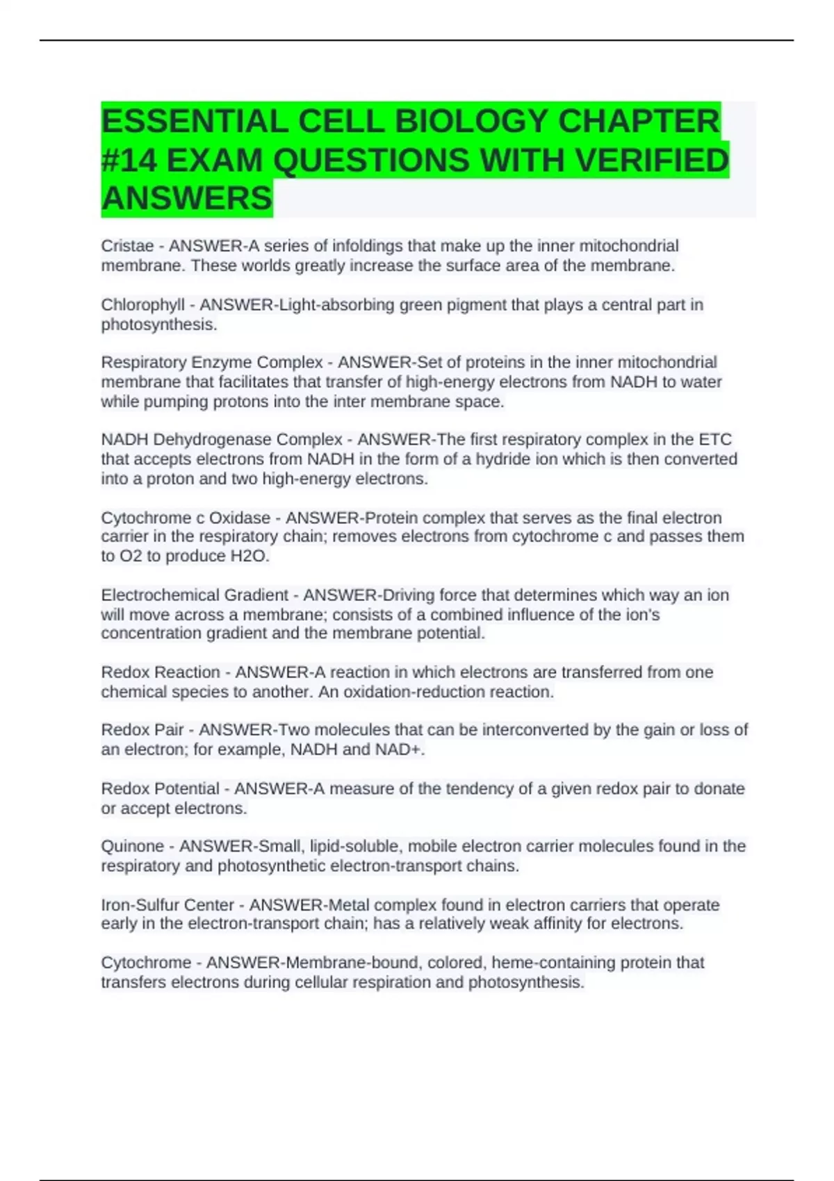 Cytochrome - ANSWER-Membrane-bound, colored, heme-containing protein that