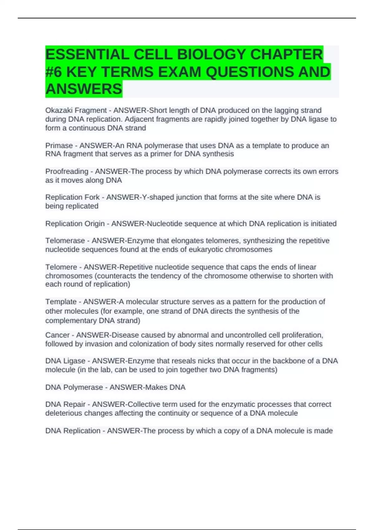 DNA Polymerase - ANSWER-Makes DNA