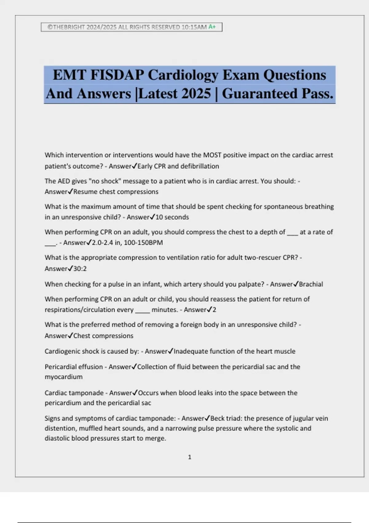 Cardiac tamponade - Answer✔Occurs when blood leaks into the space between the