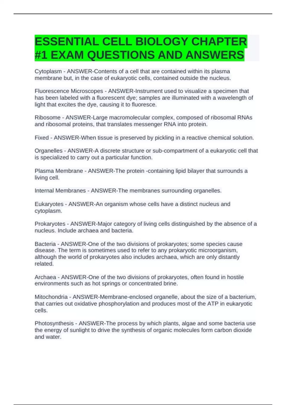 ESSENTIAL CELL BIOLOGY CHAPTER #1 EXAM QUESTIONS AND ANSWERS