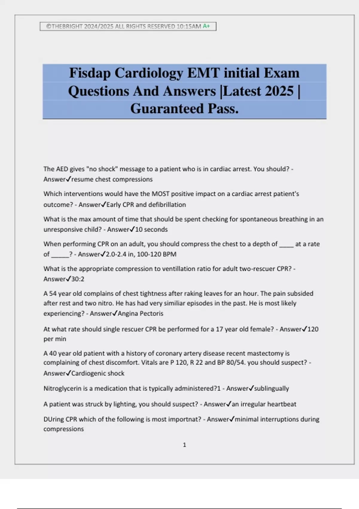 Fisdap Cardiology EMT initial Exam
