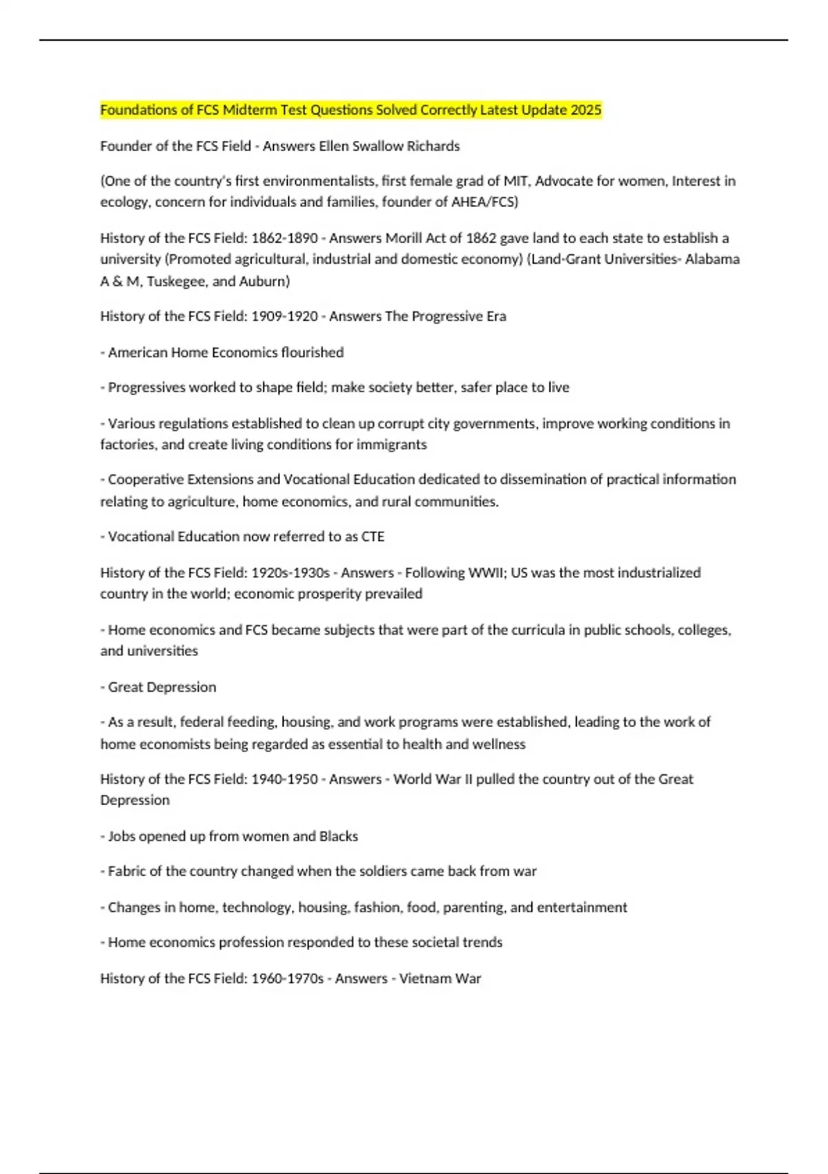 History of the FCS Field: 1960-1970s - Answers - Vietnam War
