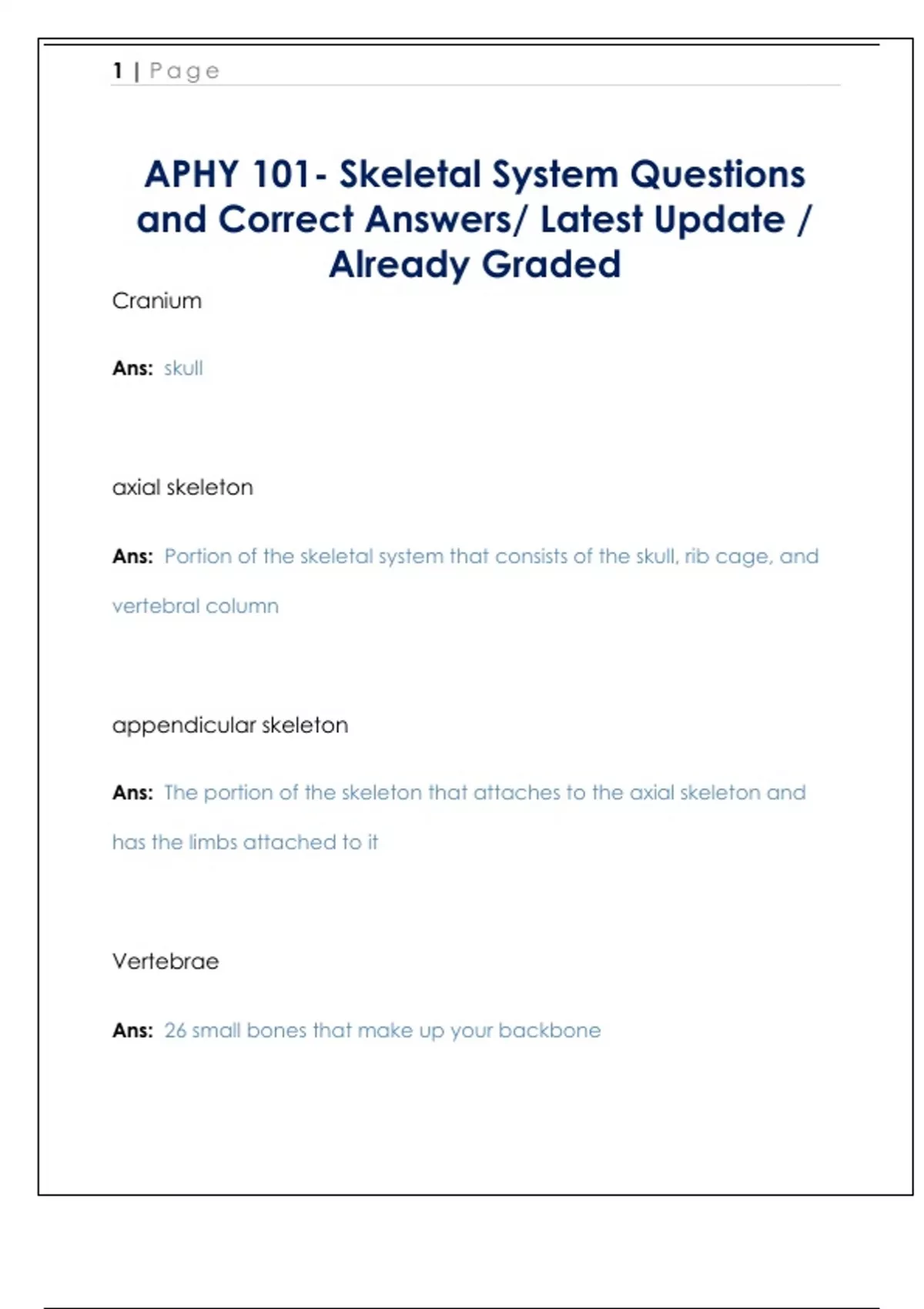 APHY 101- Skeletal System Questions and Correct Answers/ Latest Update / Already Graded