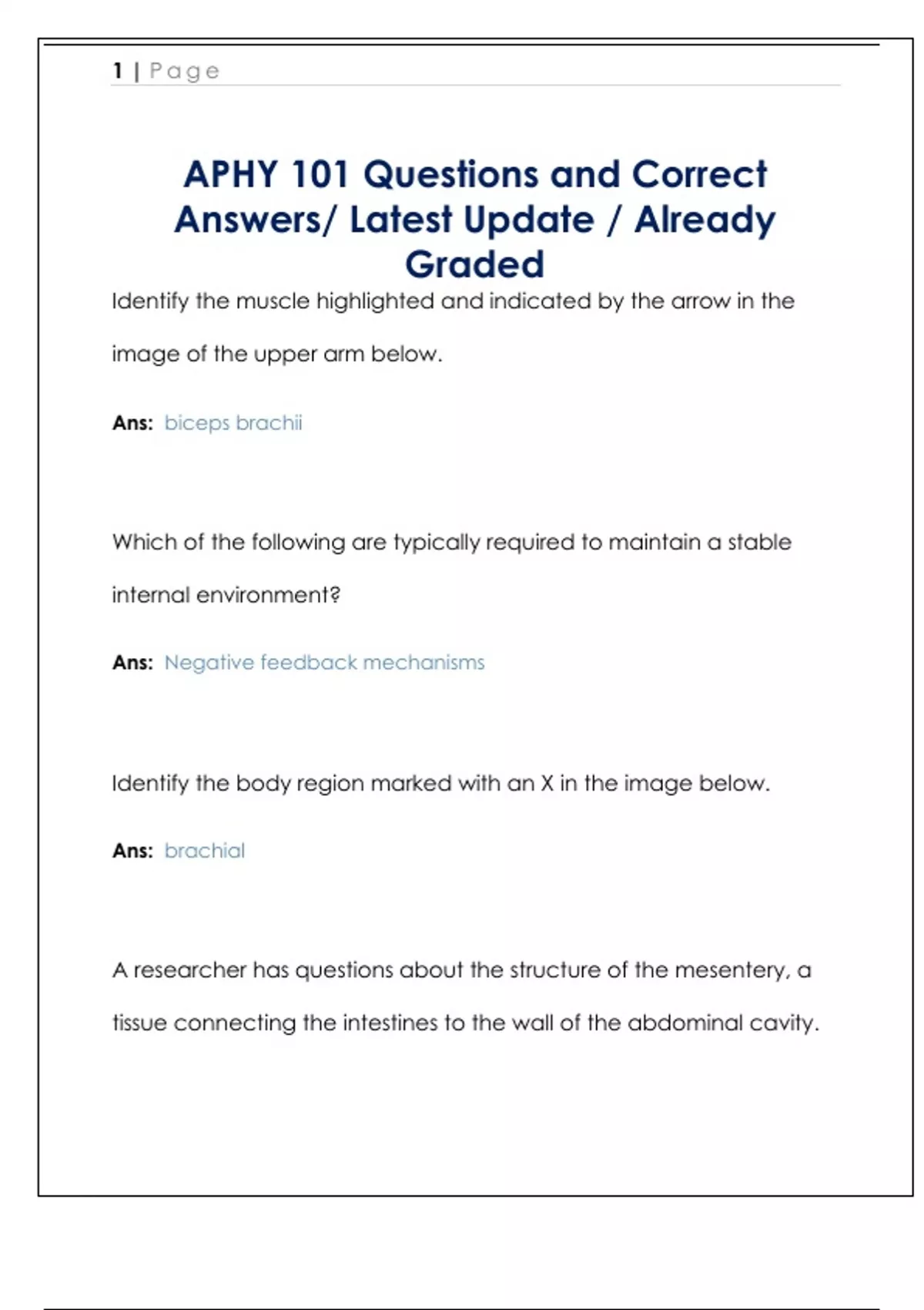 APHY 101 Questions and Correct Answers/ Latest Update / Already Graded