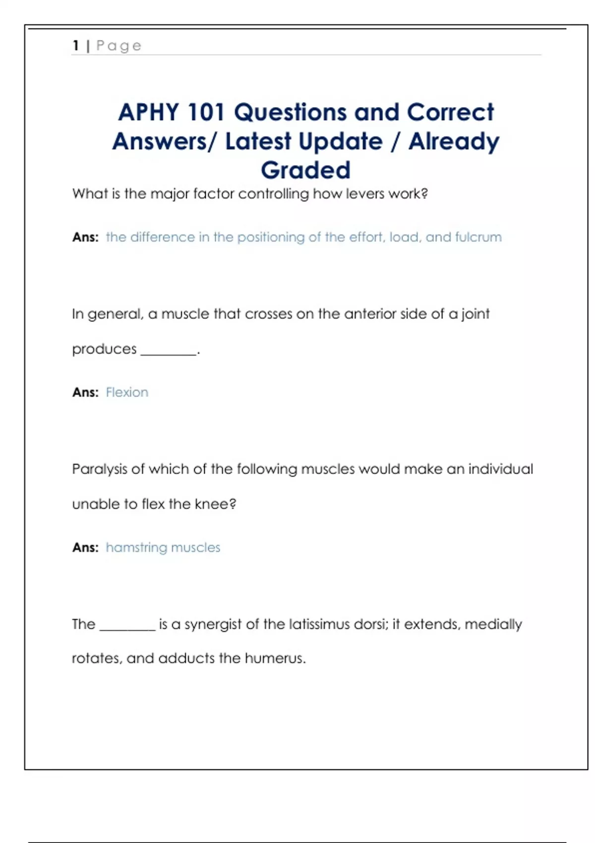 APHY 101 Questions and Correct