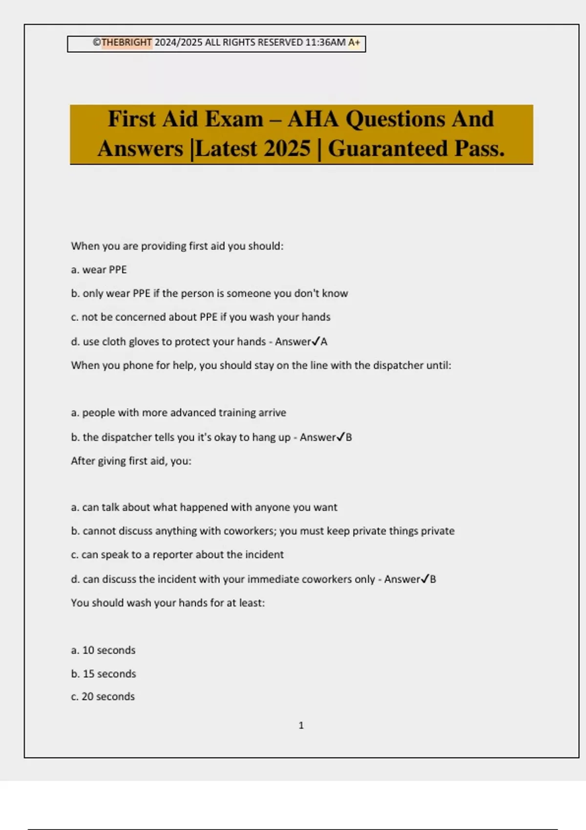 First Aid Exam – AHA Questions And