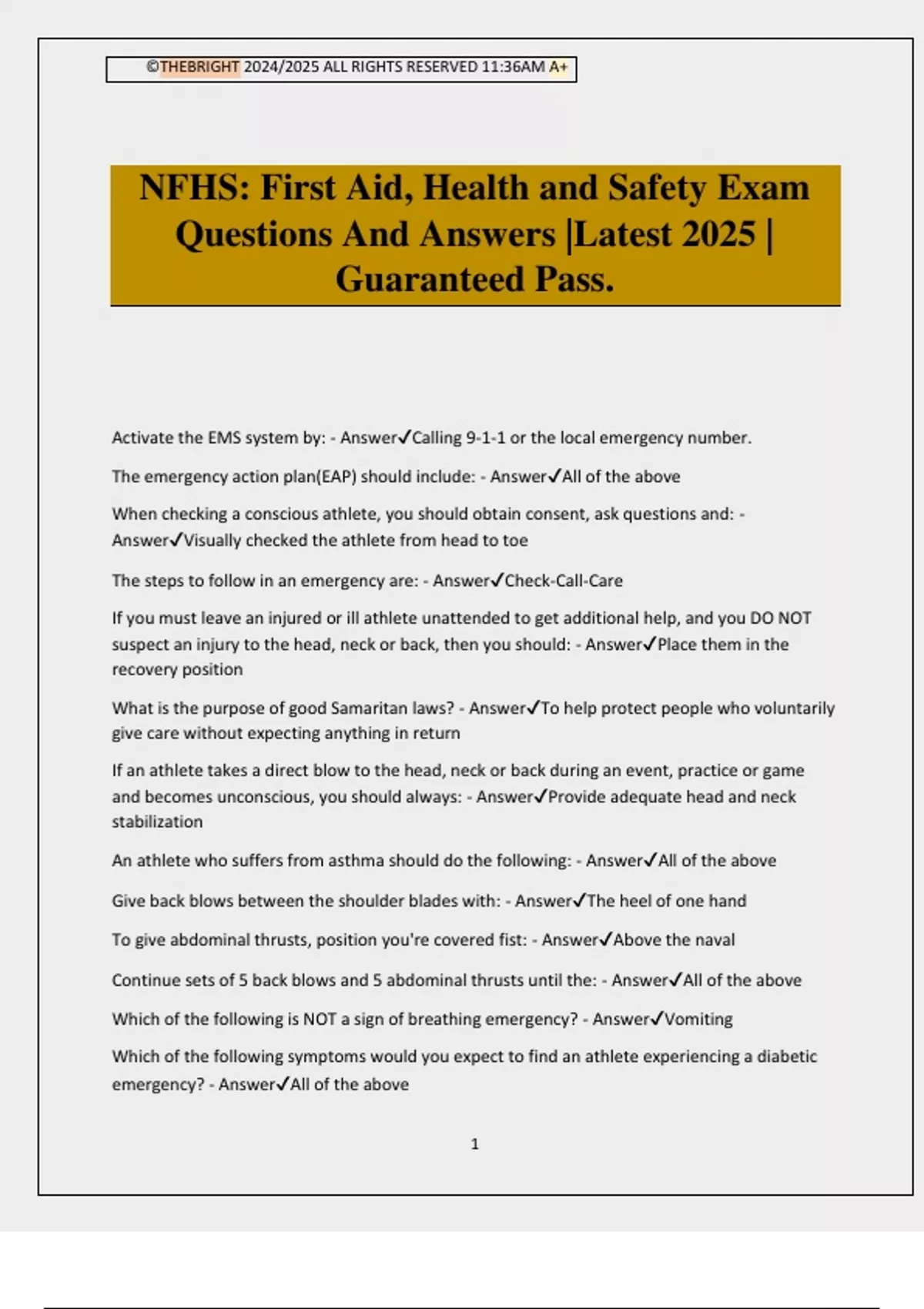 NFHS: First Aid, Health and Safety Exam