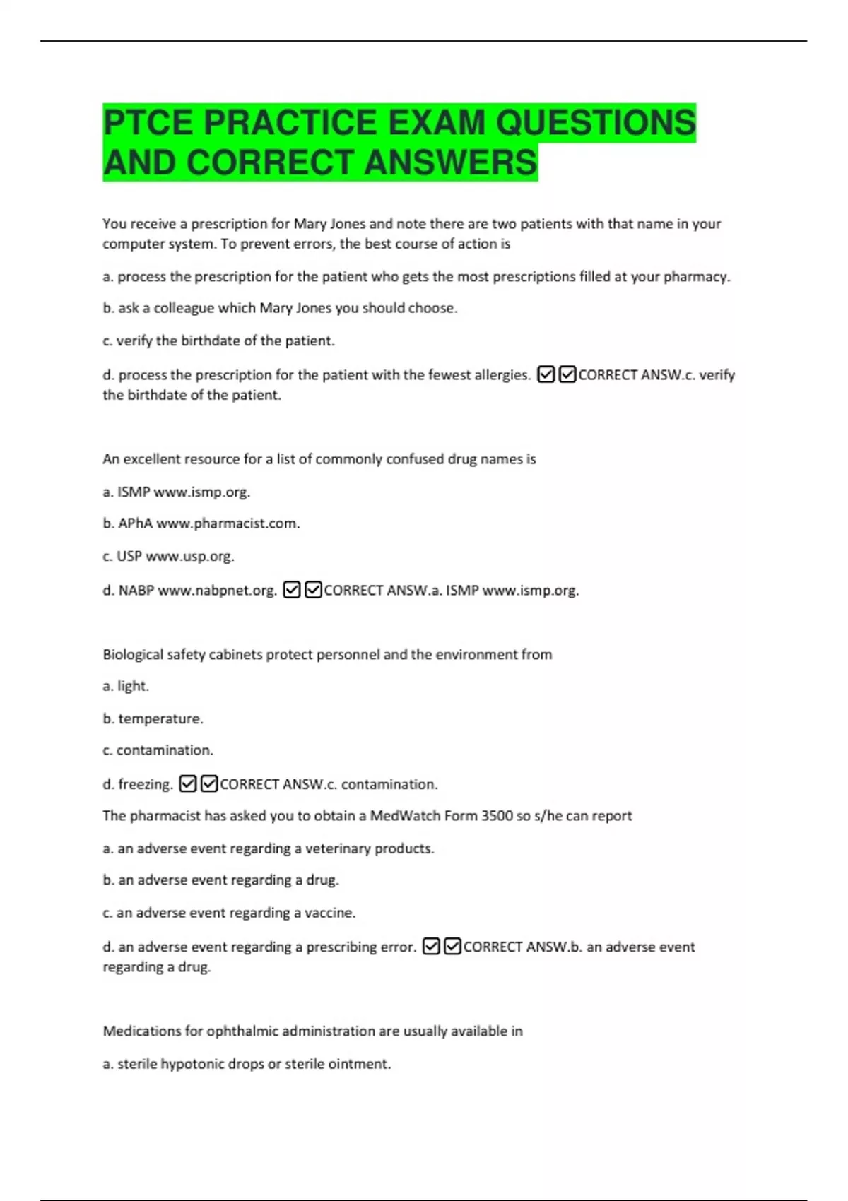 d. NABP www.nabpnet.org. ✅✅CORRECT ANSW.a. ISMP www.ismp.org.