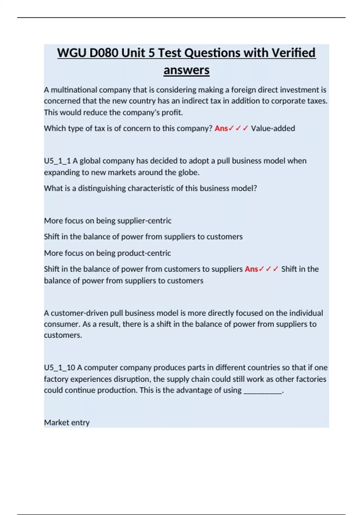 U5_1_1 A global company has decided to adopt a pull business model when