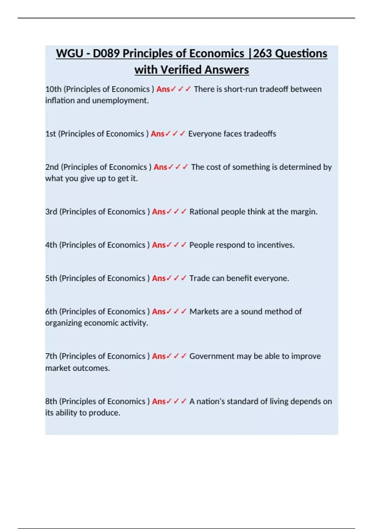 WGU - D089 Principles of Economics |263 Questions