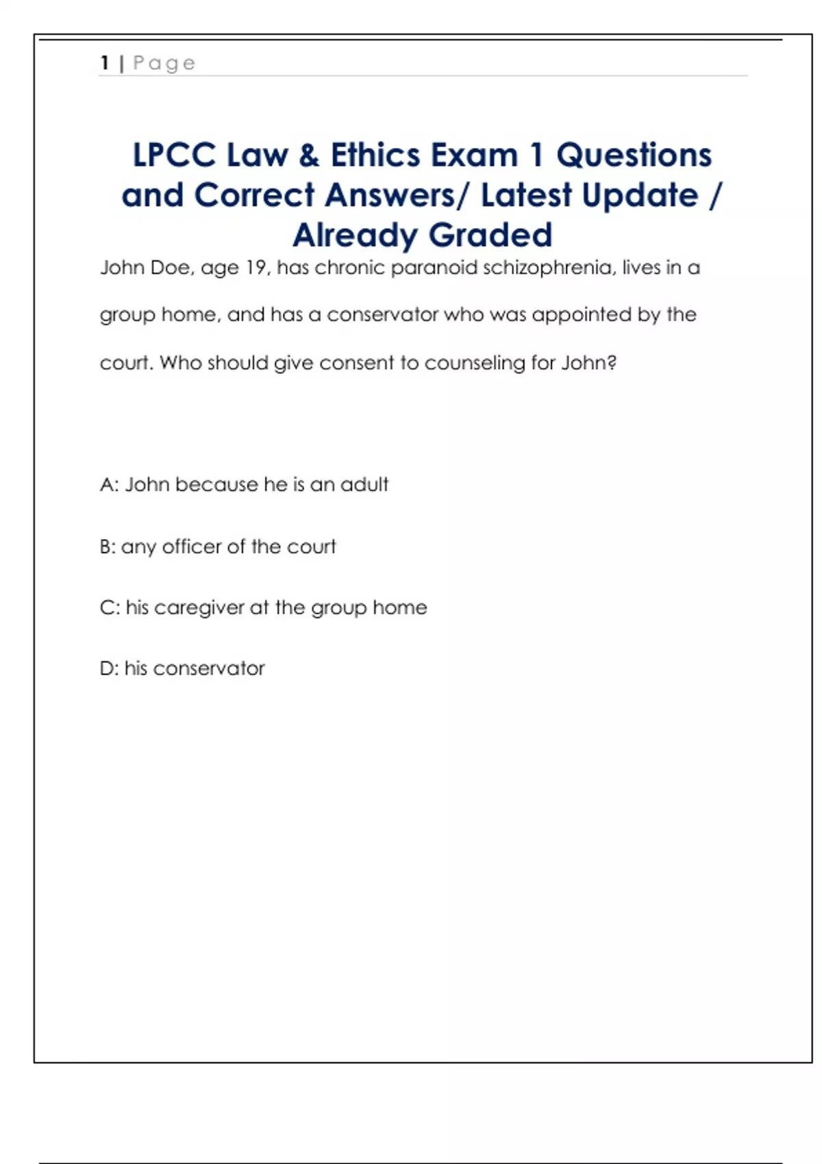 LPCC Law & Ethics Exam 1 Questions