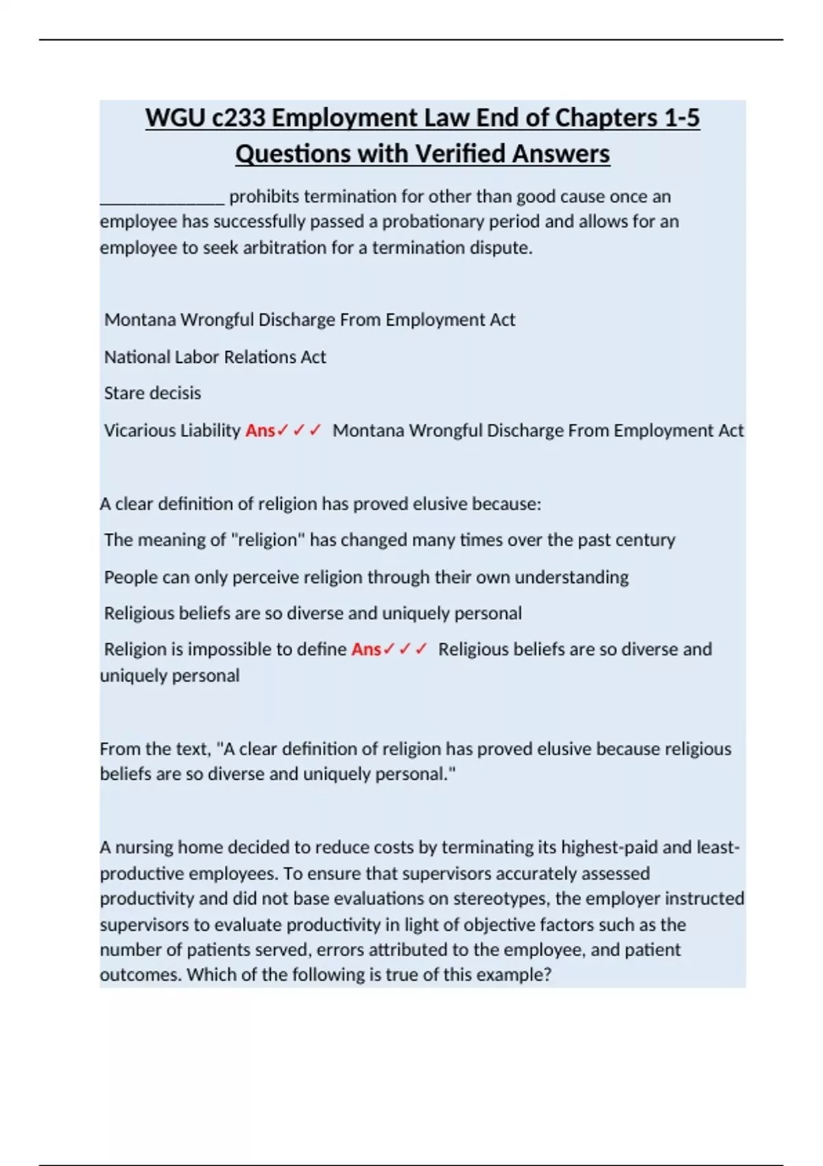 Vicarious Liability Ans✓✓✓ Montana Wrongful Discharge From Employment Act