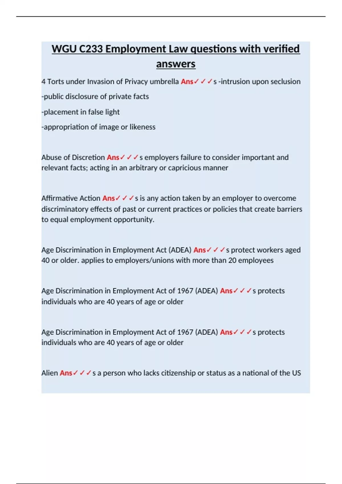 Age Discrimination in Employment Act (ADEA) Ans✓✓✓s protect workers aged